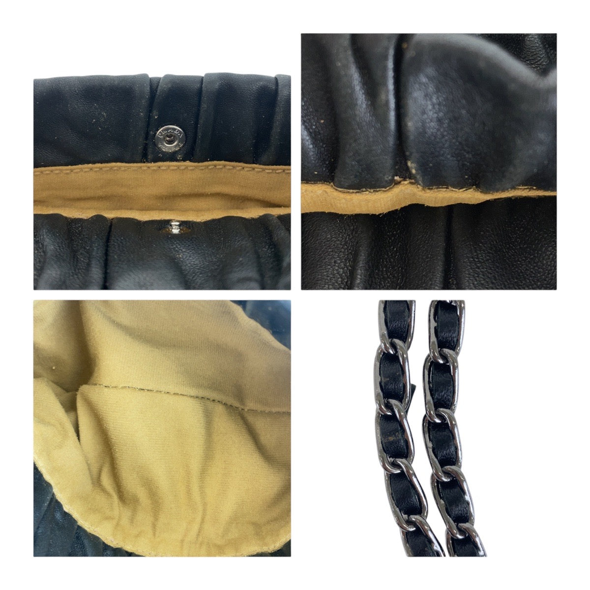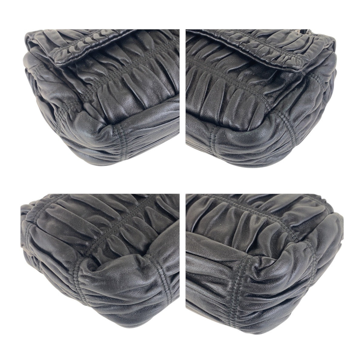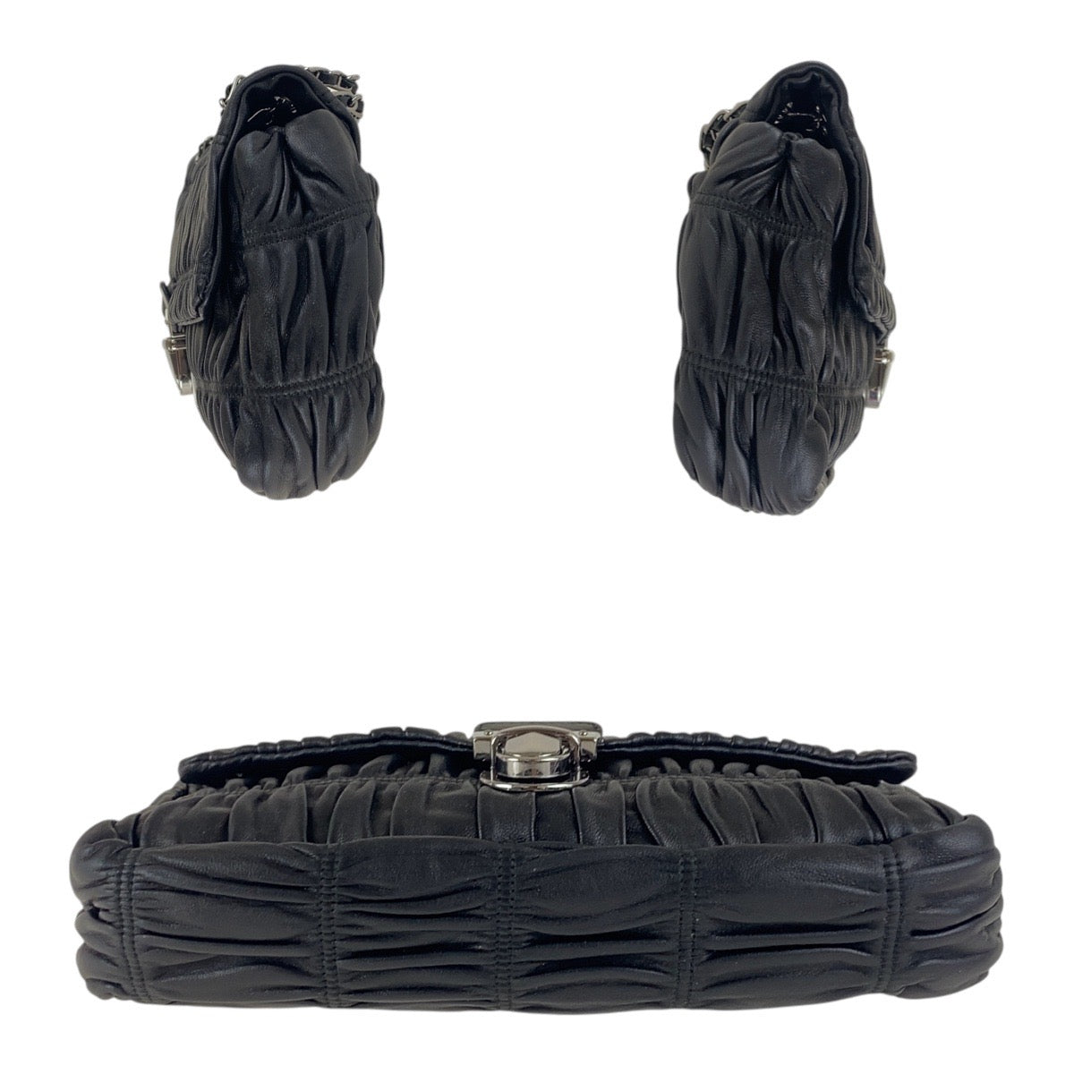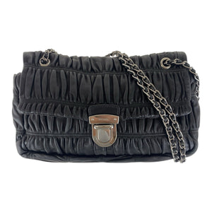 Prada Shoulder Bag Leather Black Silvermetal Crossbody Chain Shoulder Bag Gathered Women