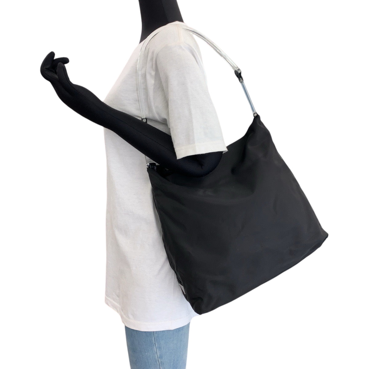 Prada Shoulder Bag Nylon Black Silvermetal Clear One Shoulder Bag Test Triangle With Logo Women