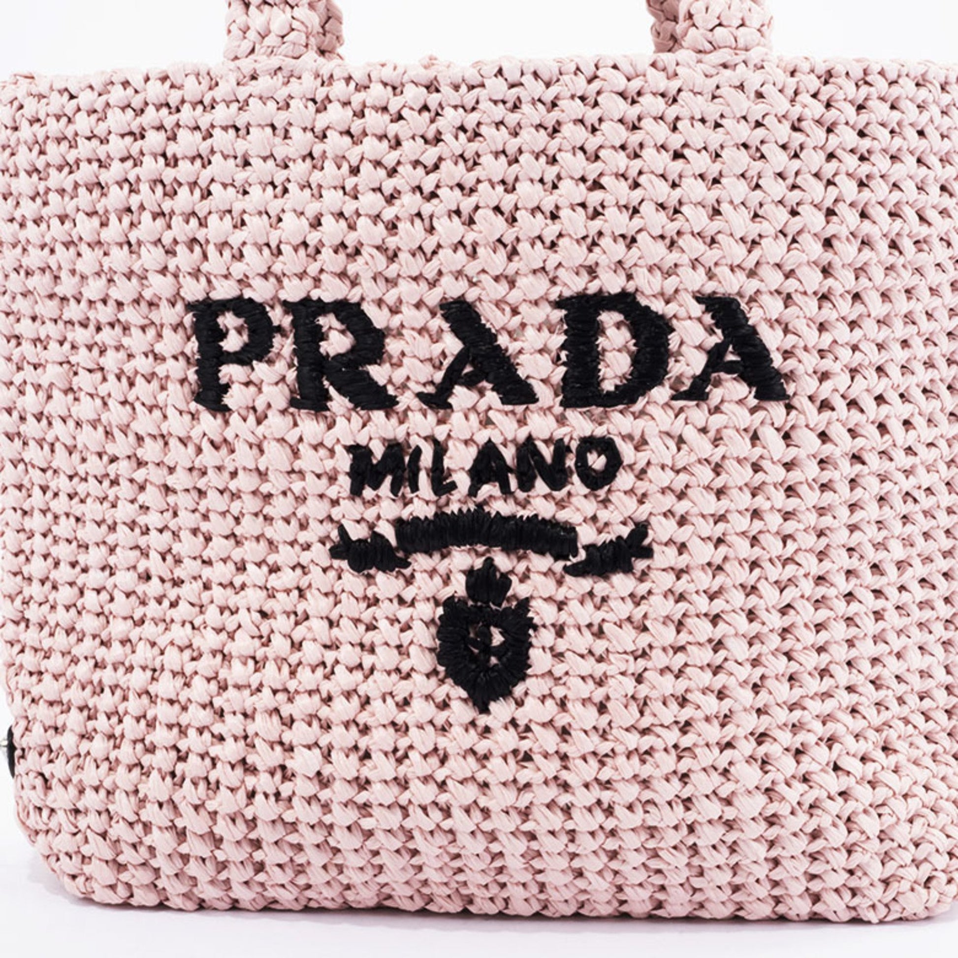 Prada Small Crochet Tote Bag 1Bg422 Raffia-Like Pink