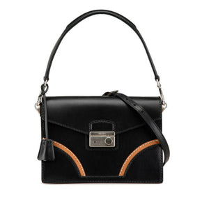 Prada Stitched Rim Handbag Shoulder Bag Br5138 Black Leather