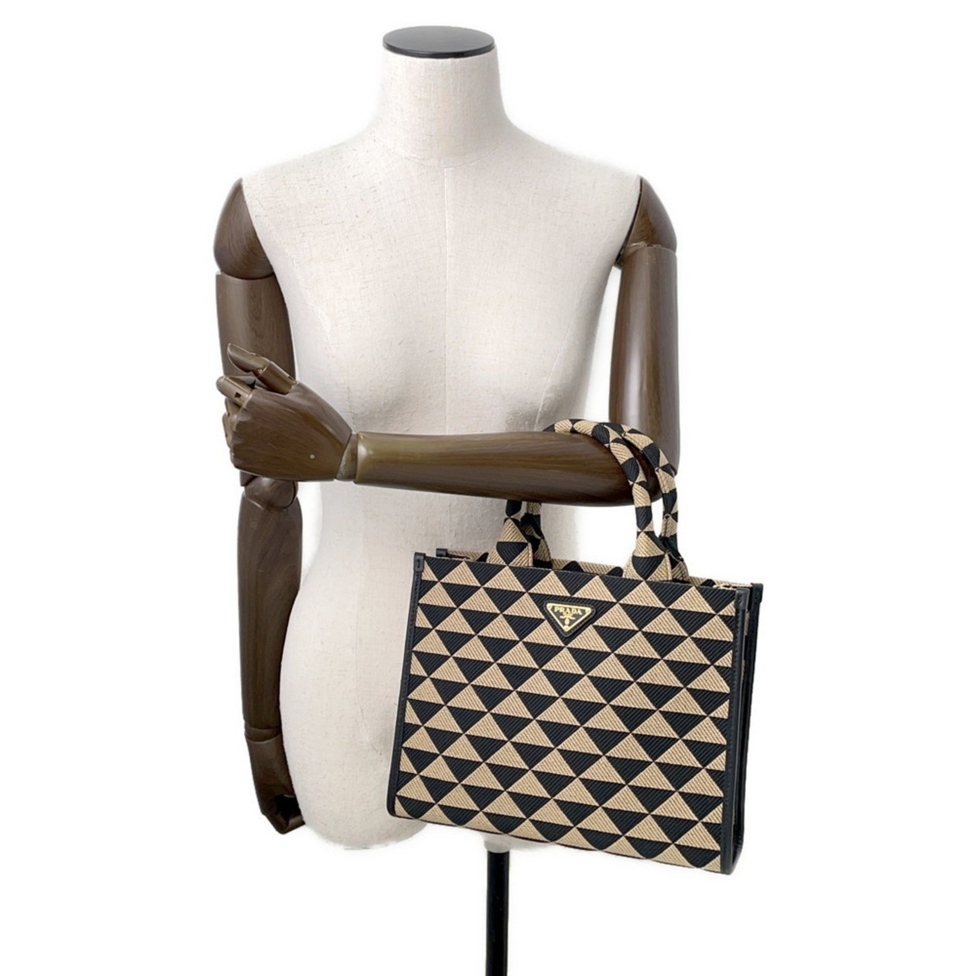 Prada Symbol Embroidered Fabric Small Handbag In Saffiano 1Ba354
