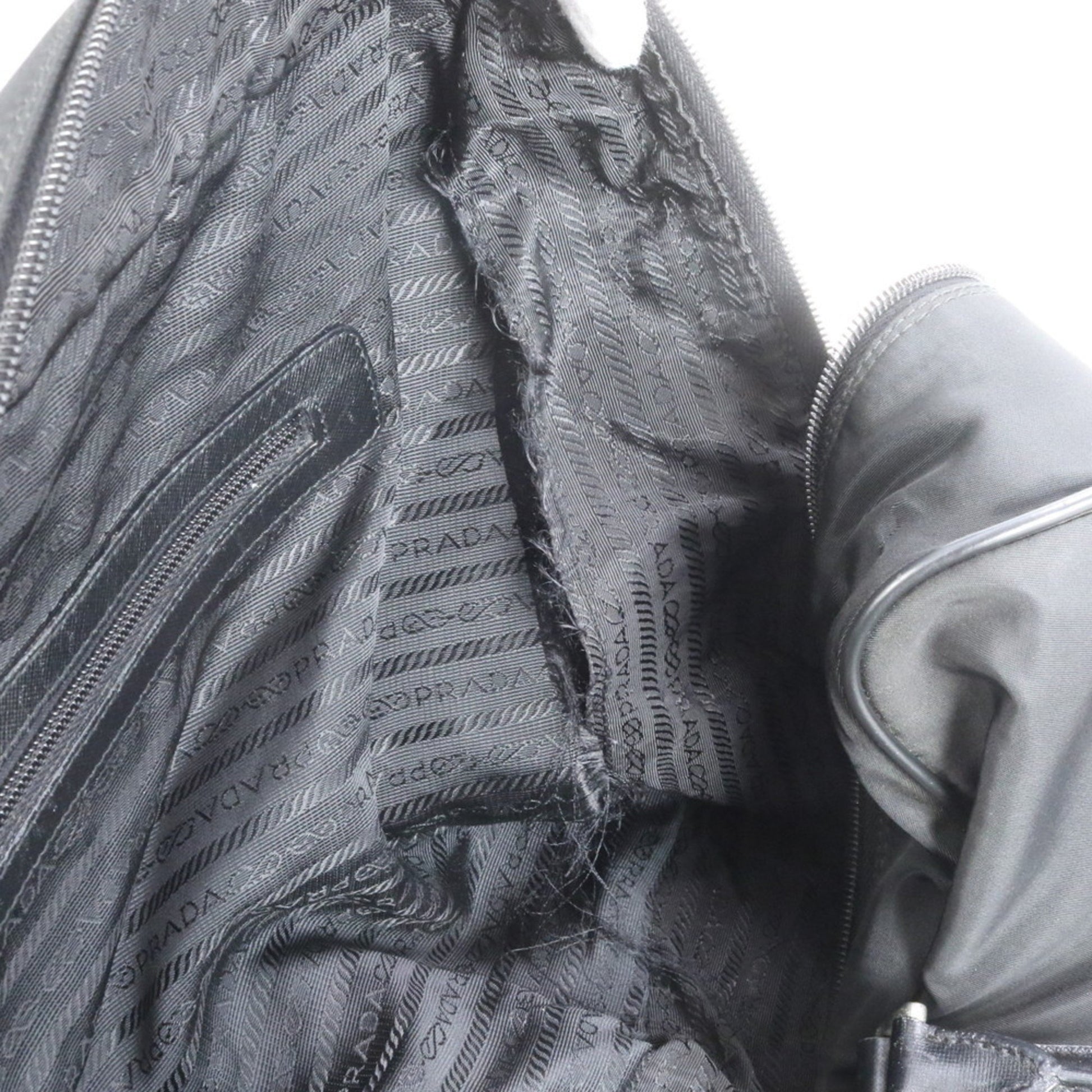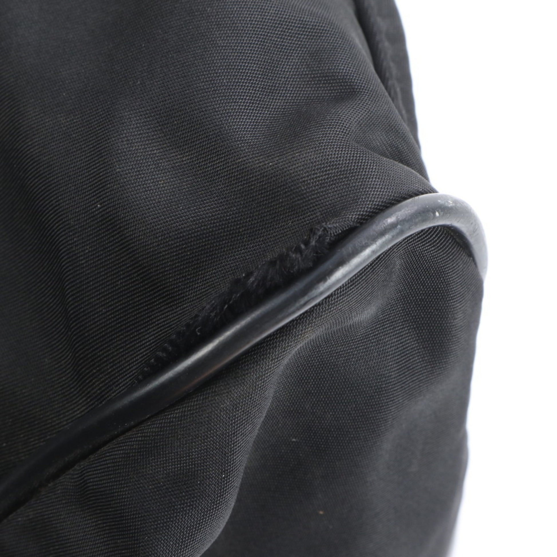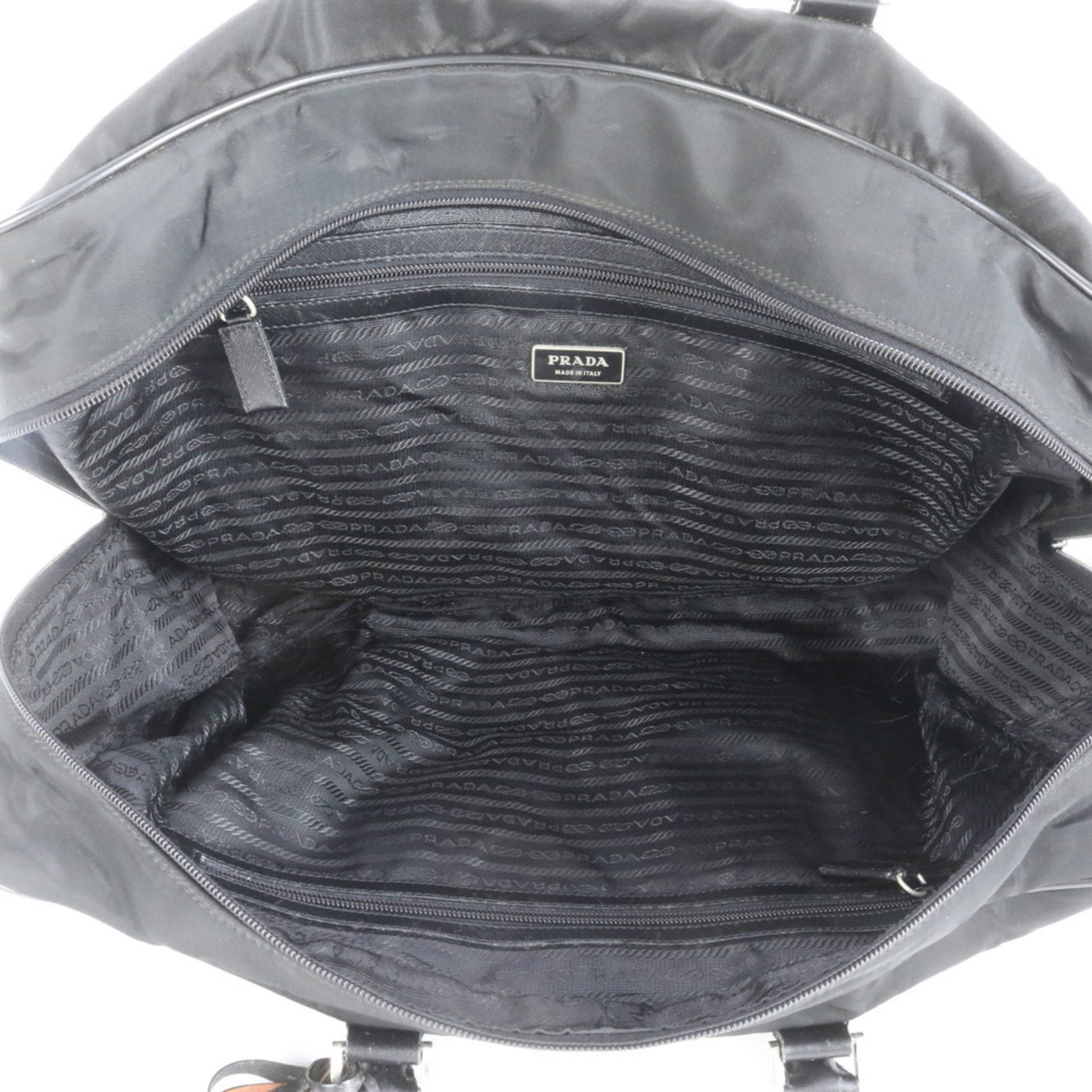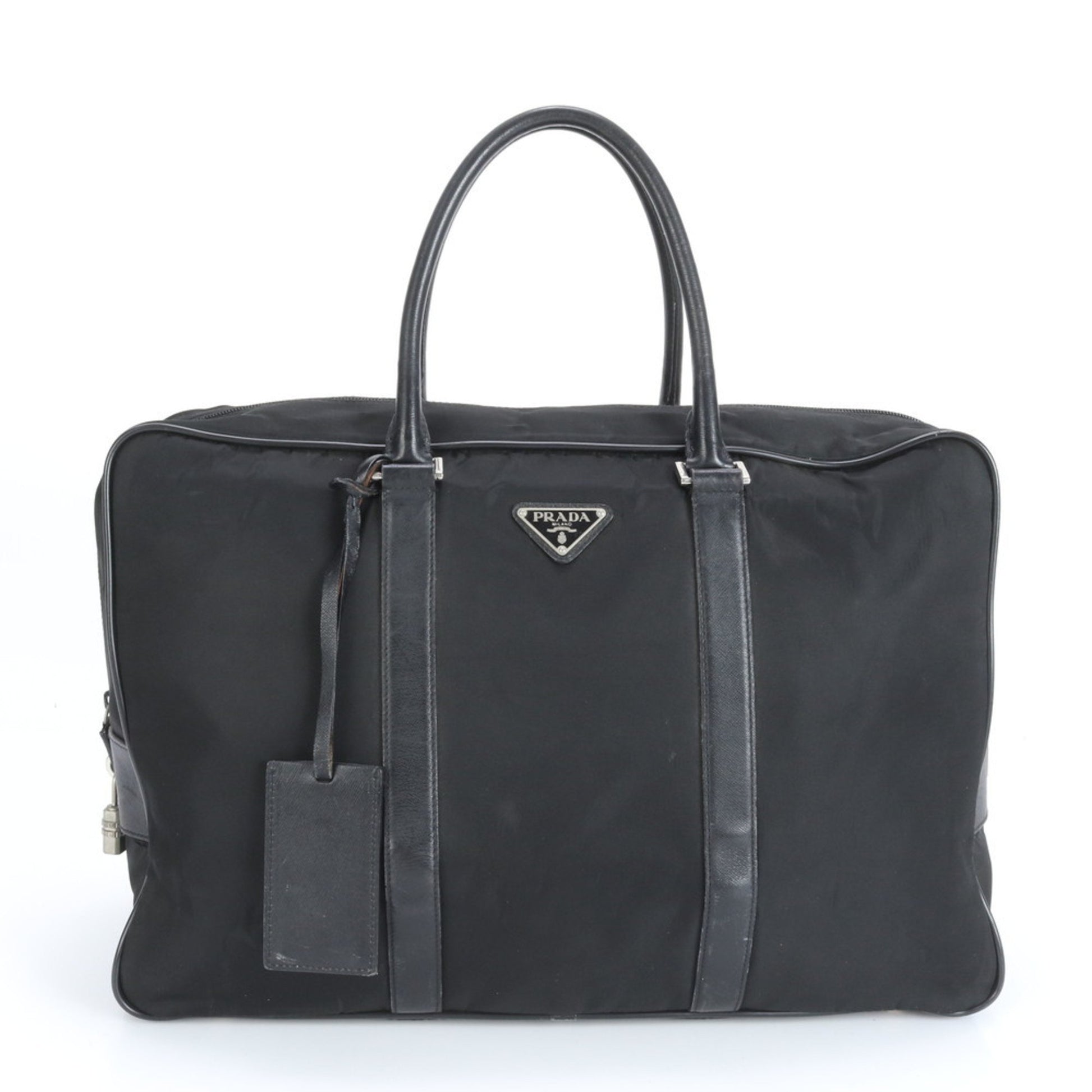 Prada Tessuto Nylon Triangular Logo Leather Boston Bag Tote Travel Black