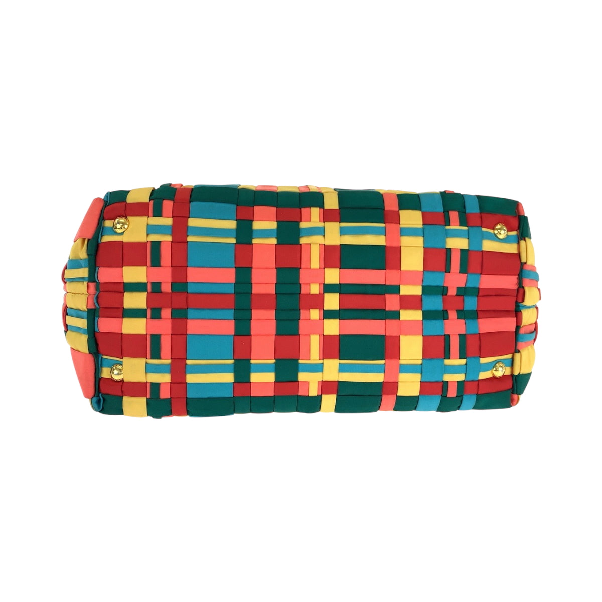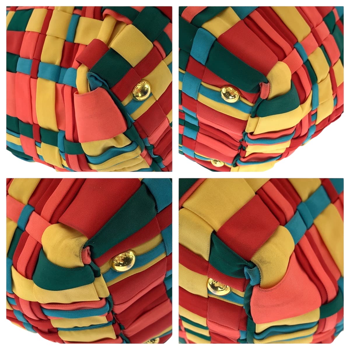 Prada Tote Bag Bn1652 Nylon Multicolor Goldmetal Test Triangle With Logo Braid