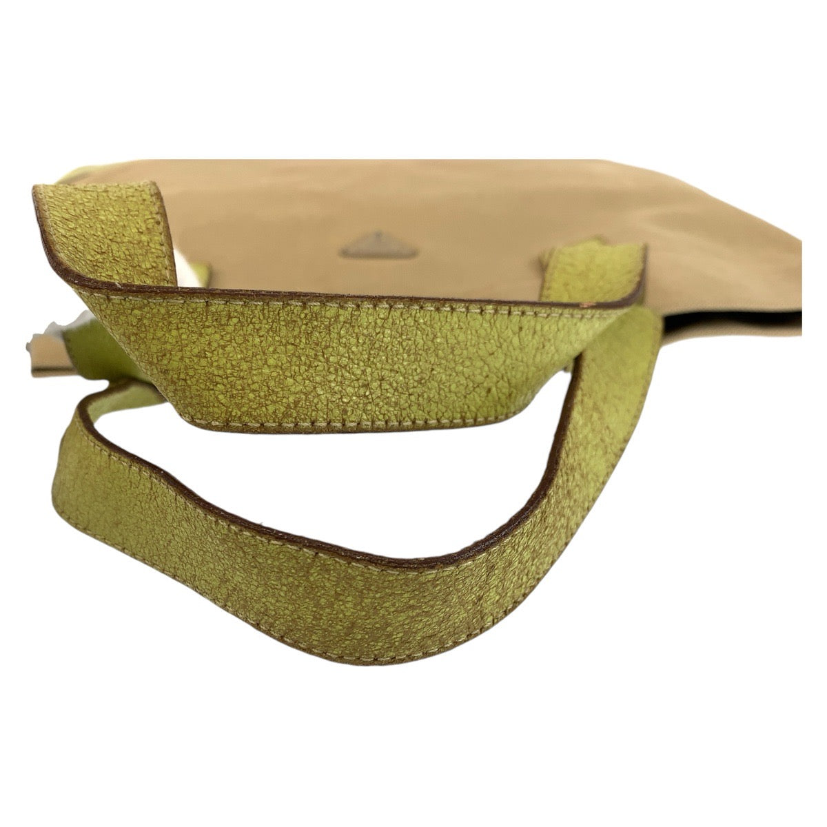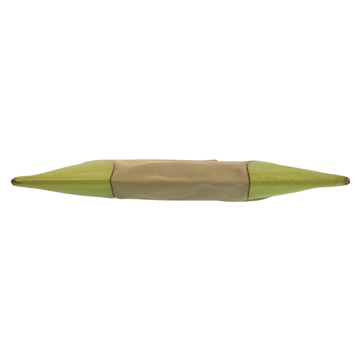 Prada Tote Bag Canvas Beige Green Silvermetal Triangle With Logo