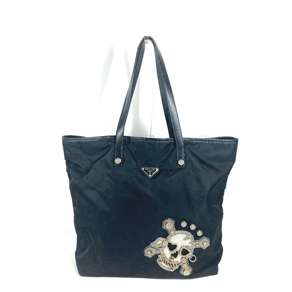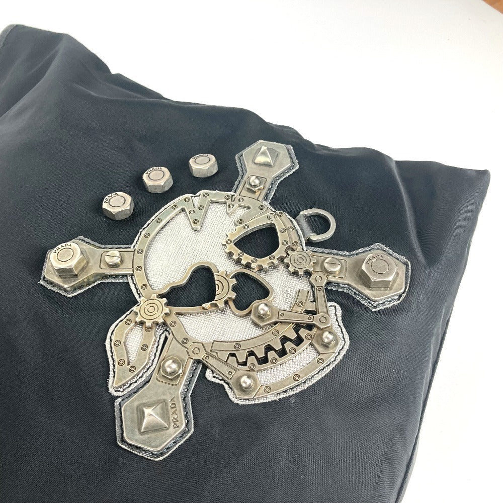 Prada Tote Bag Nylon / Leather Black Skull Logo
