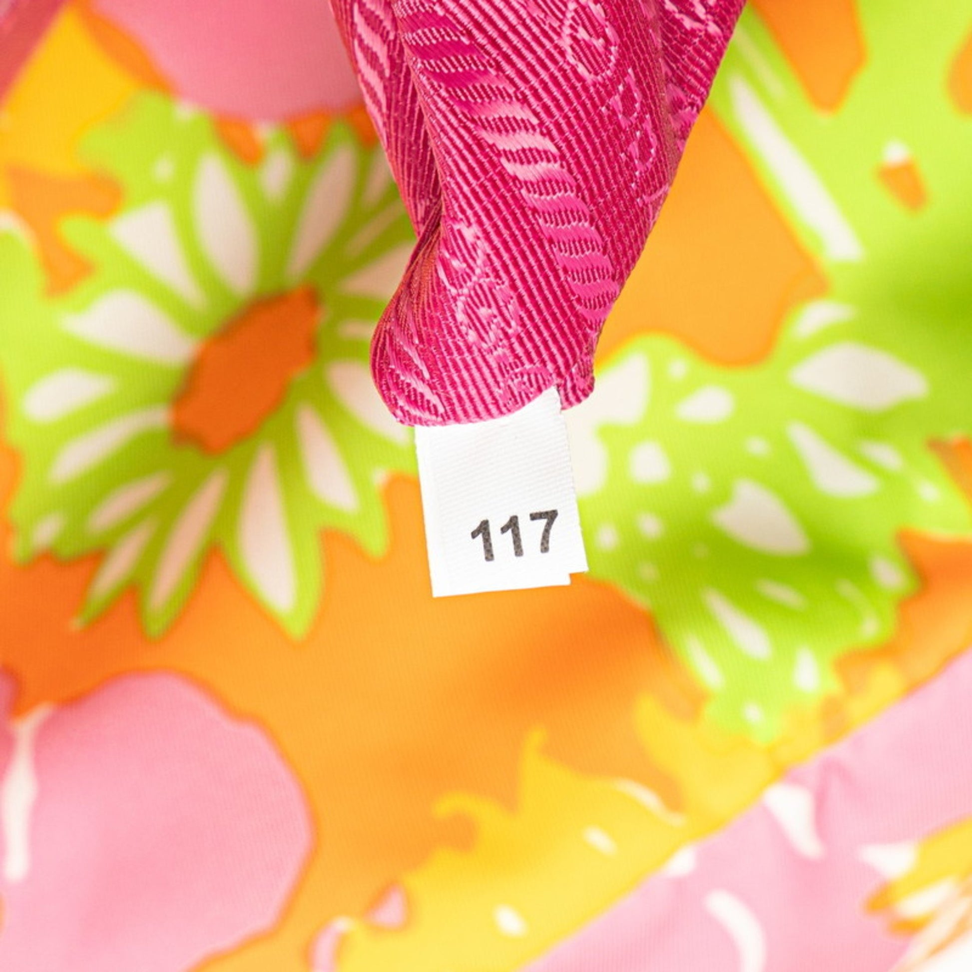 Prada Triangle Flower Motif Tote Bag Shoulder Pink Orange Multicolor Nylon Leather