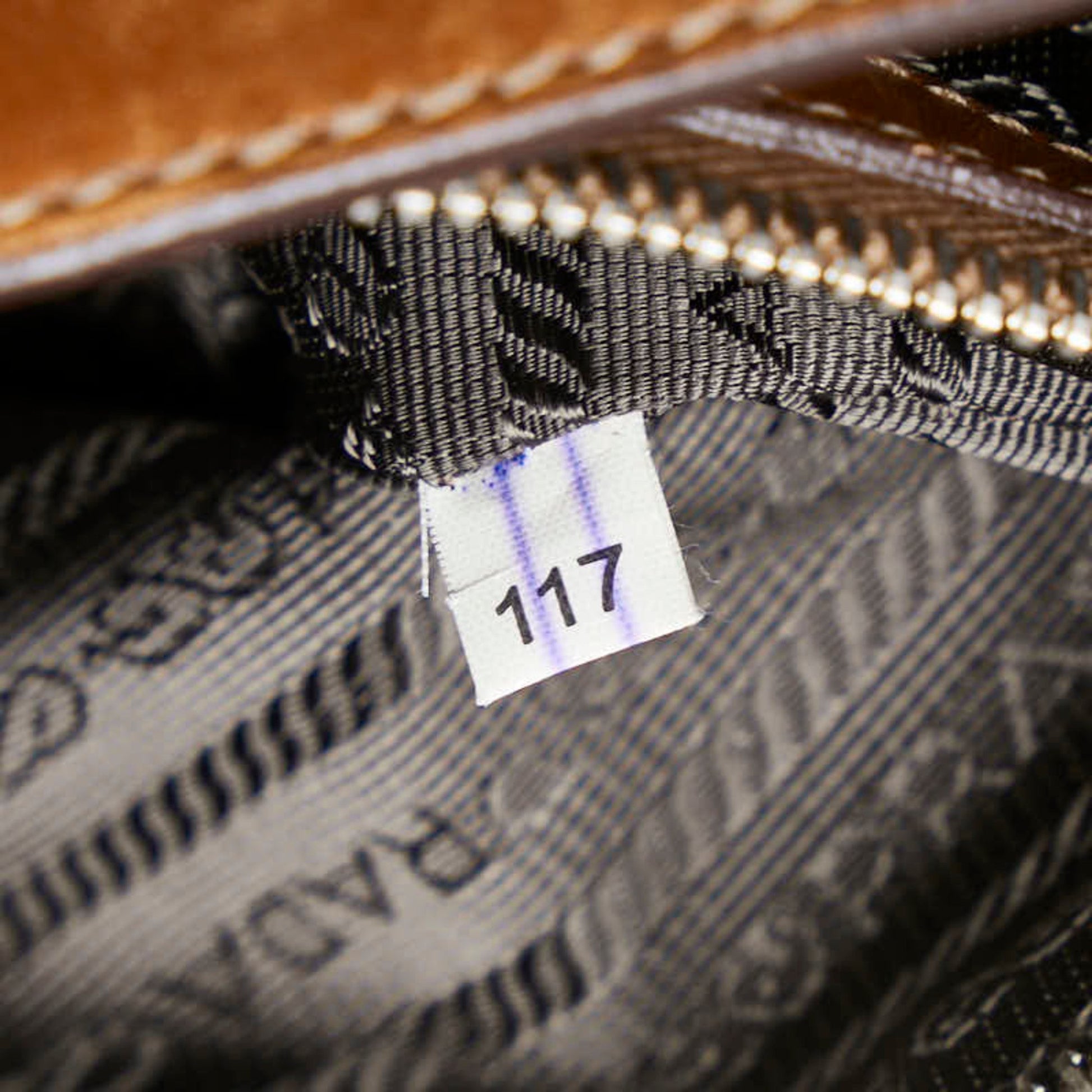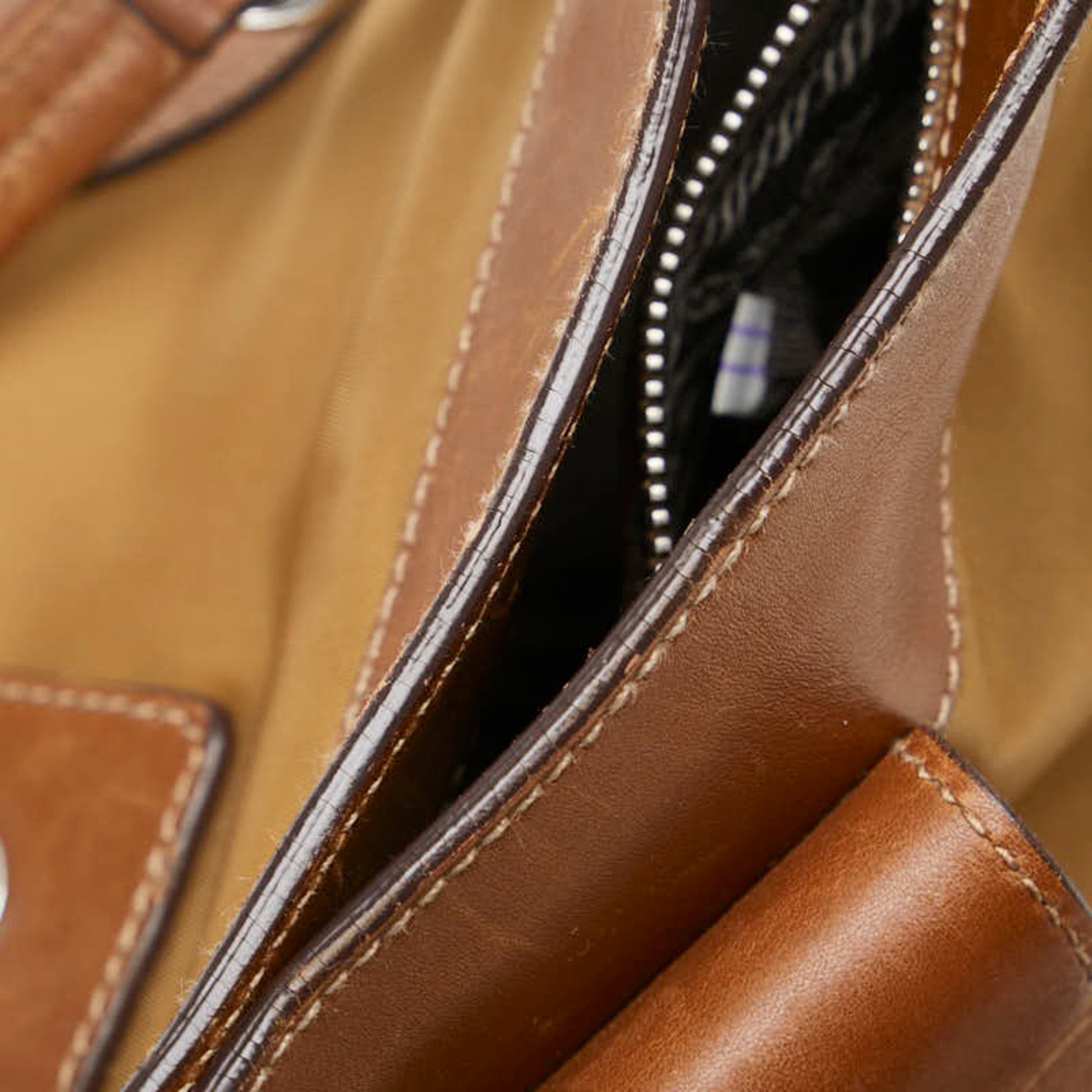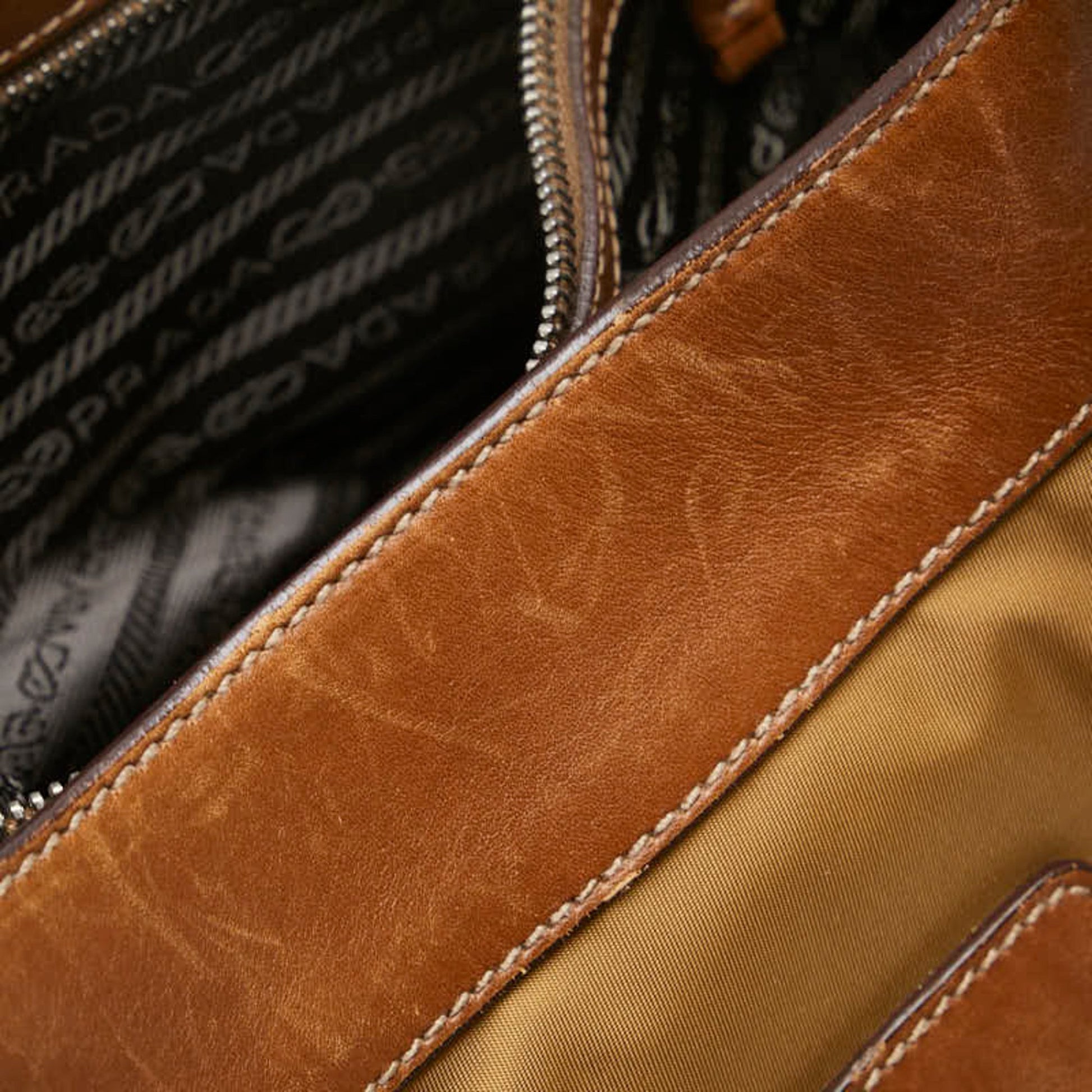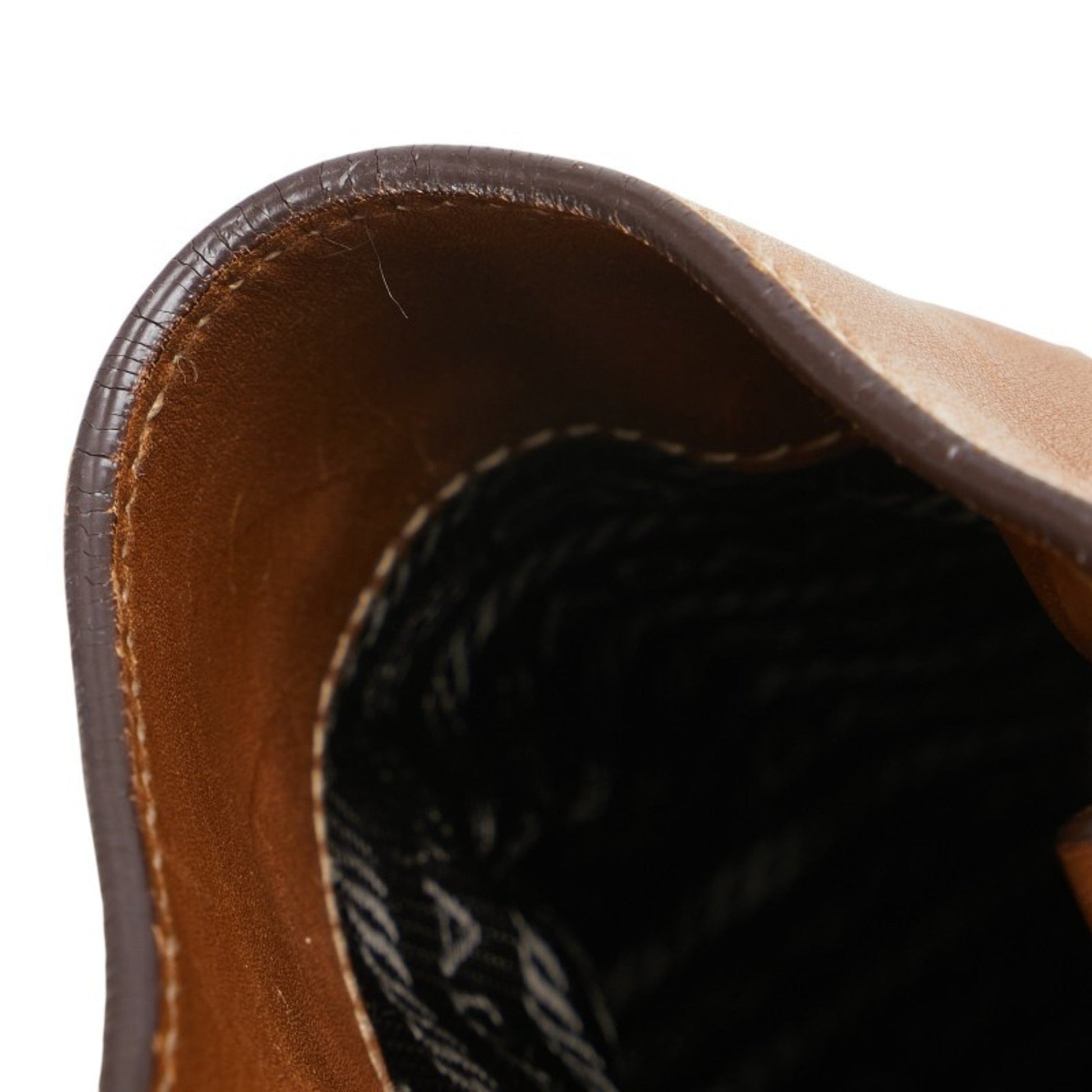 Prada Triangle Logo Plate Handbag Shoulder Bag Brown Nylon Leather