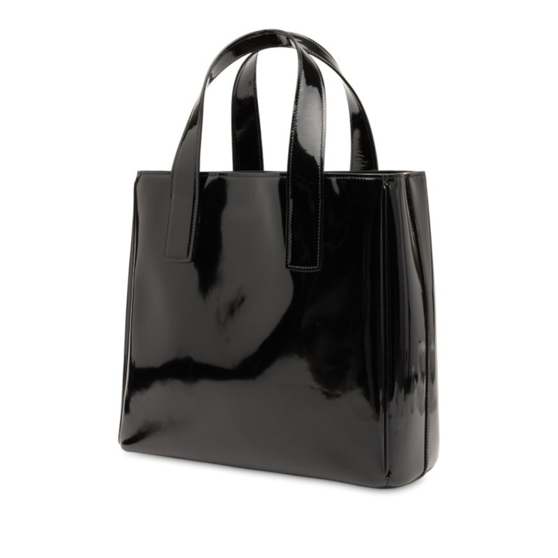 Prada Triangle Logo Plate Handbag Tote Bag Black Patent Leather