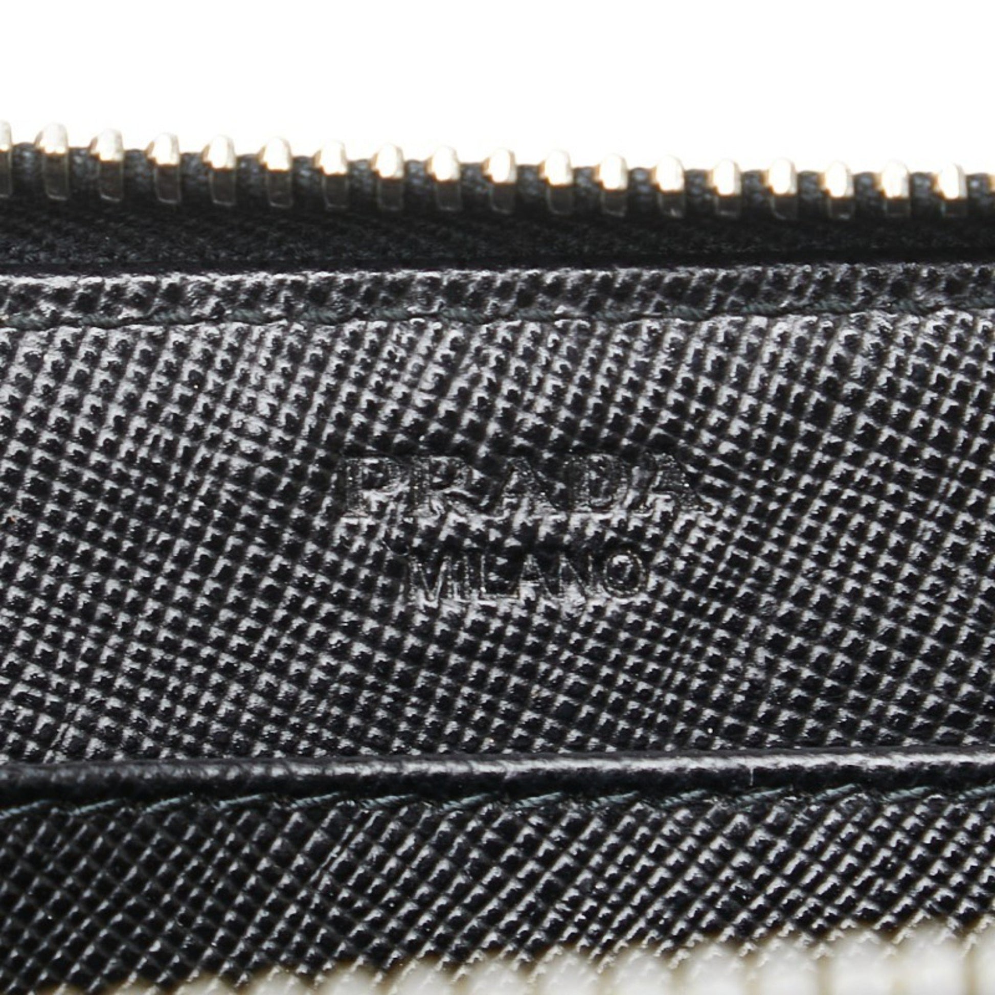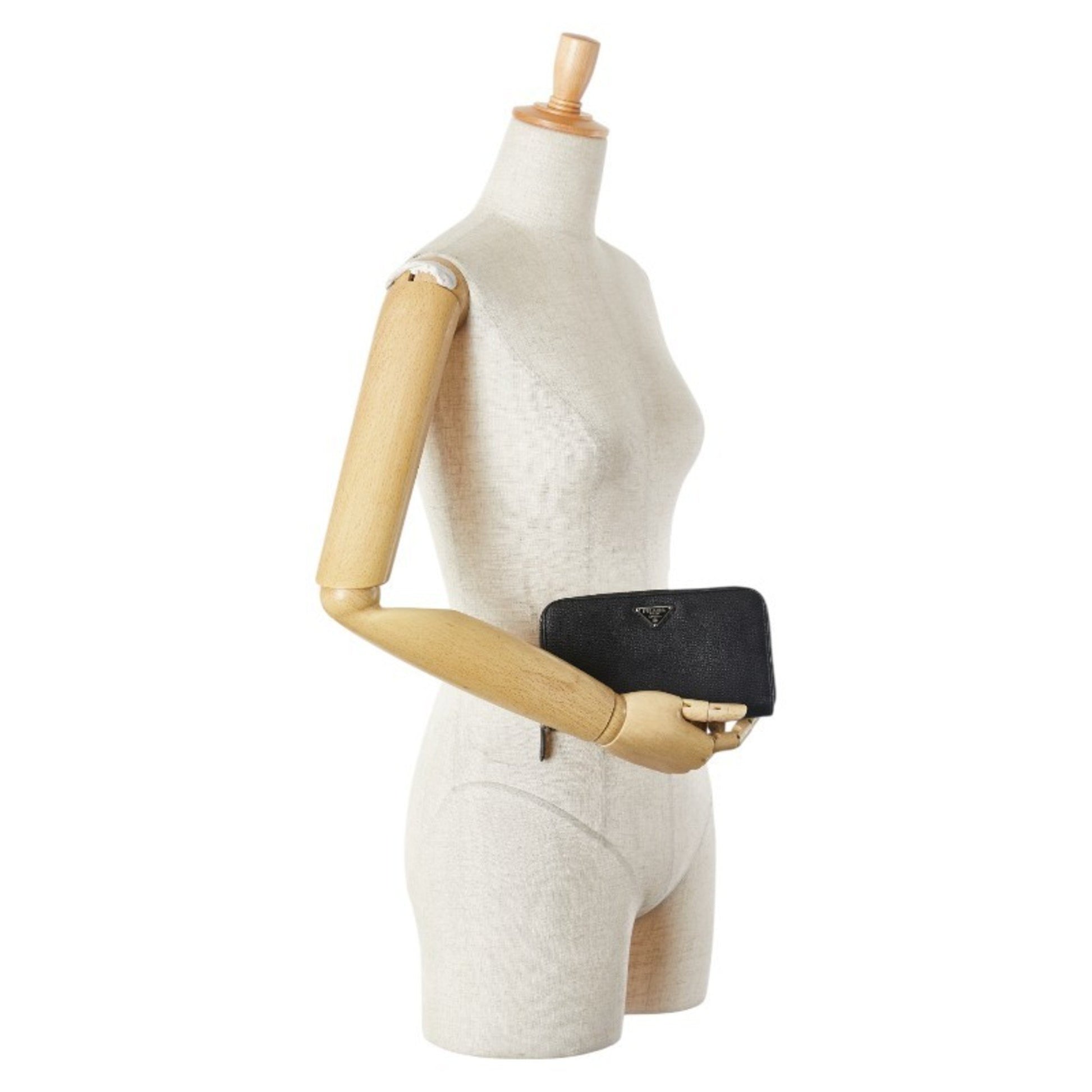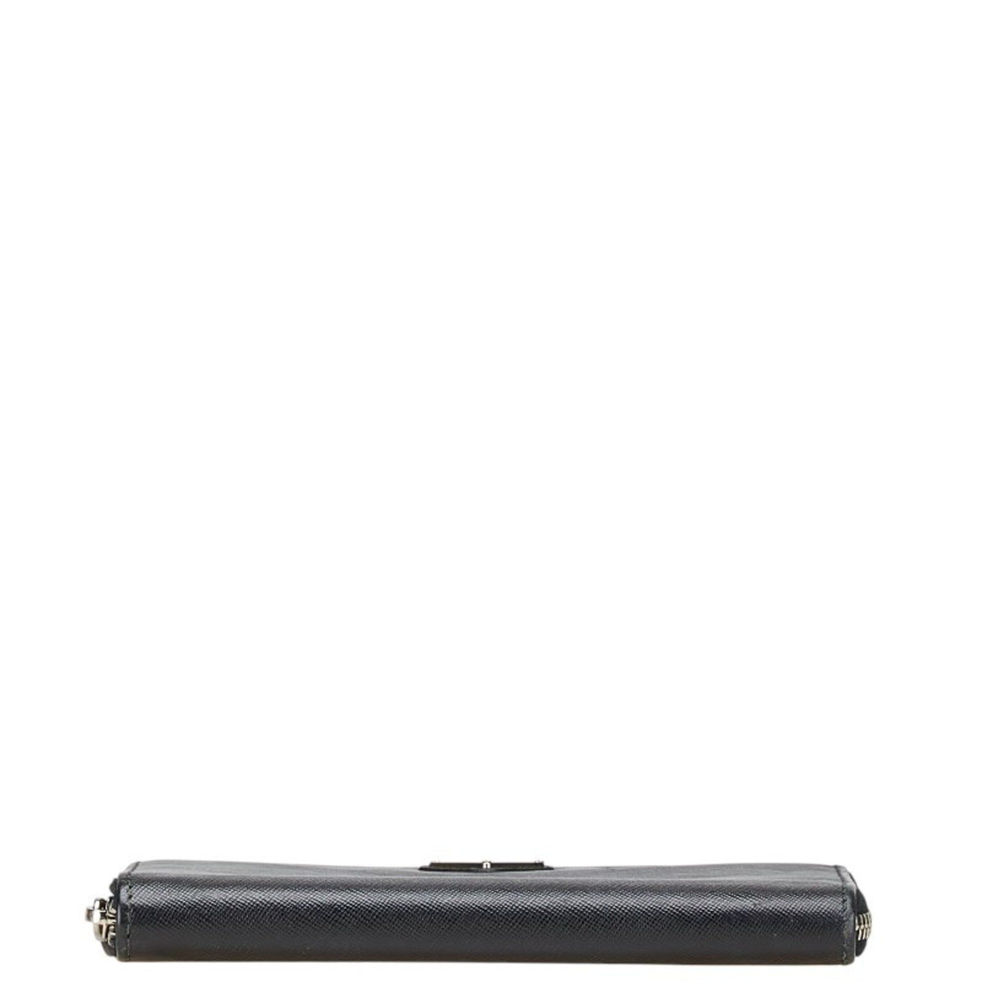 Prada Triangle Logo Plate Long Wallet Round Zipper Black Leather