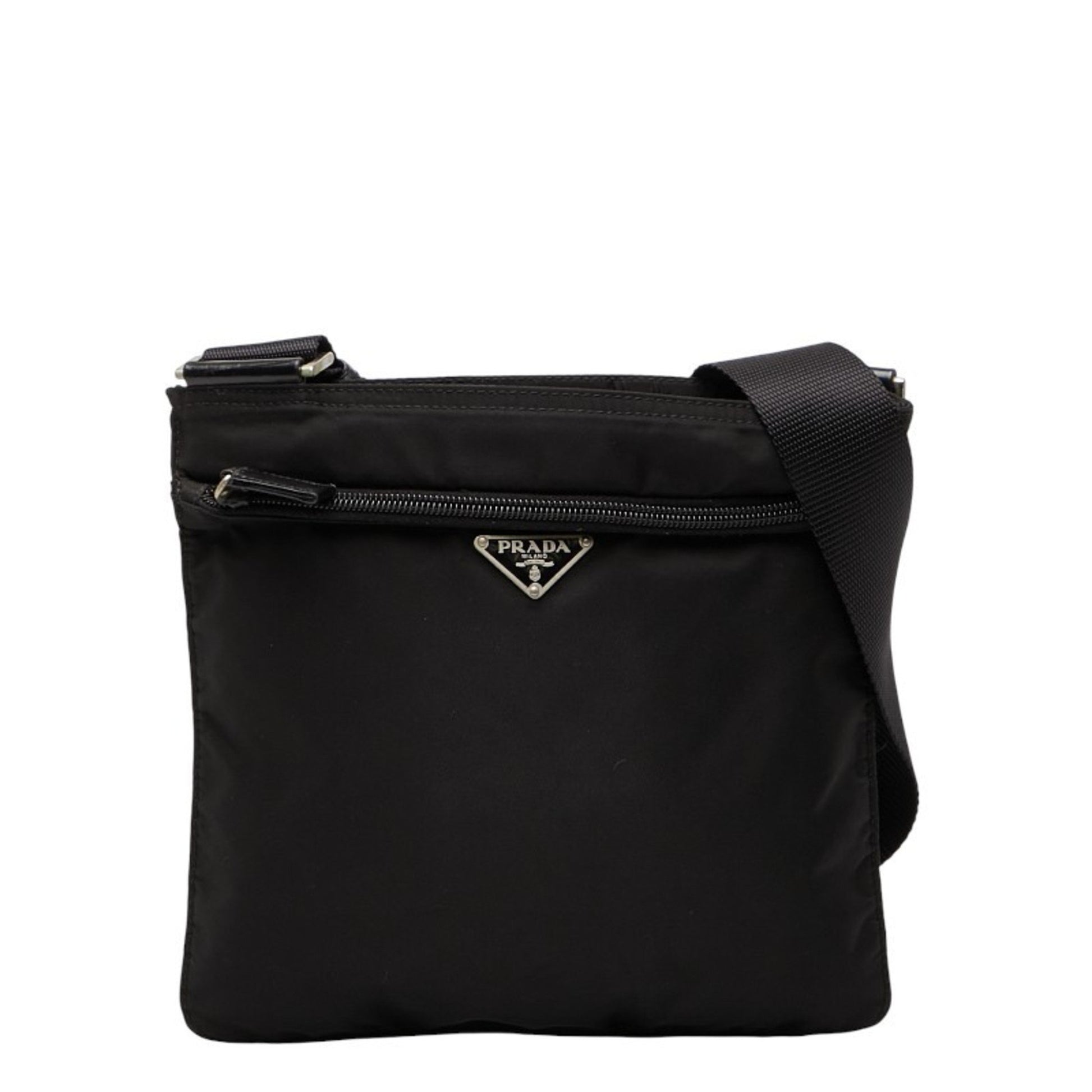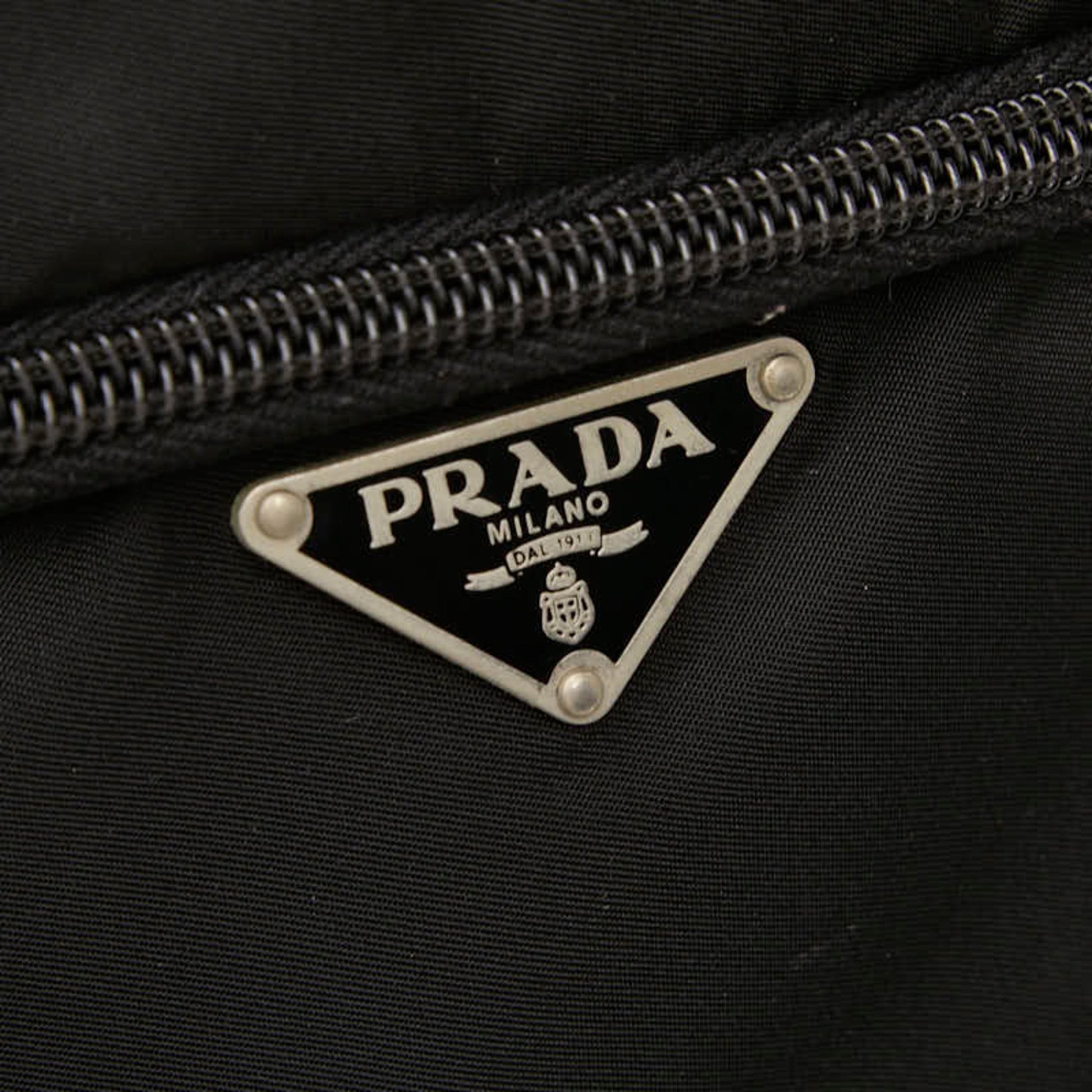 Prada Triangle Logo Plate Shoulder Bag Black Nylon