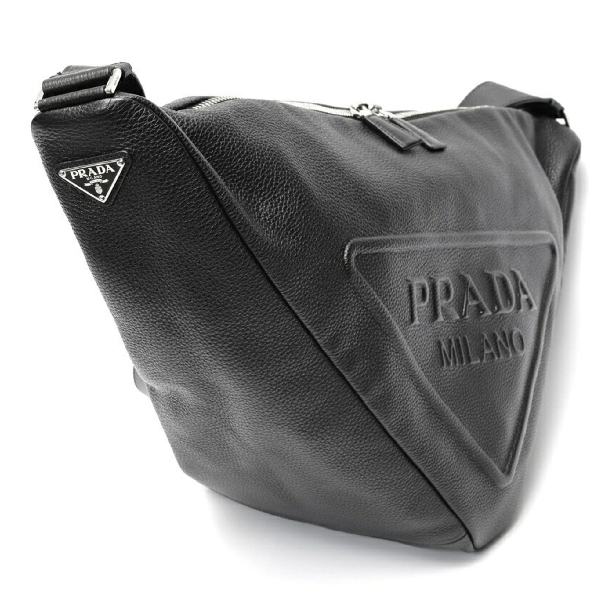 Prada Triangle Vitello Dino Leather Bag Shoulder 2Vy007 Black K-158714