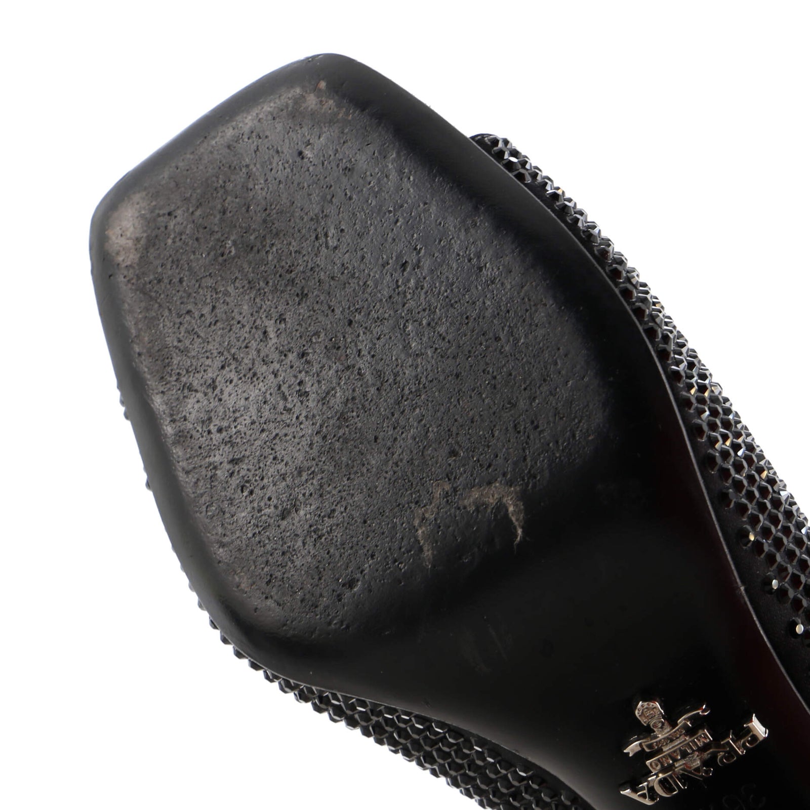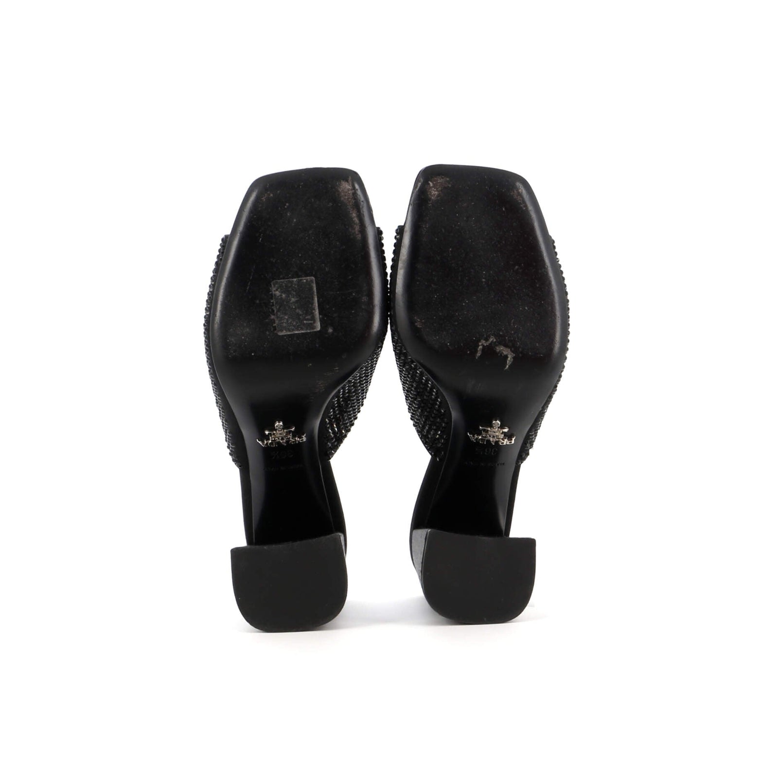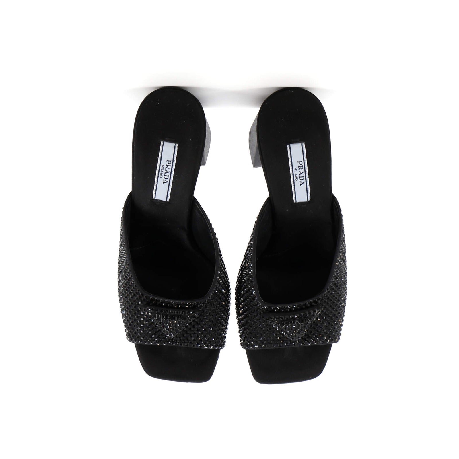 Prada Women'S Triangle Logo Heeled Mule Sandals Crystal Embellished Satin