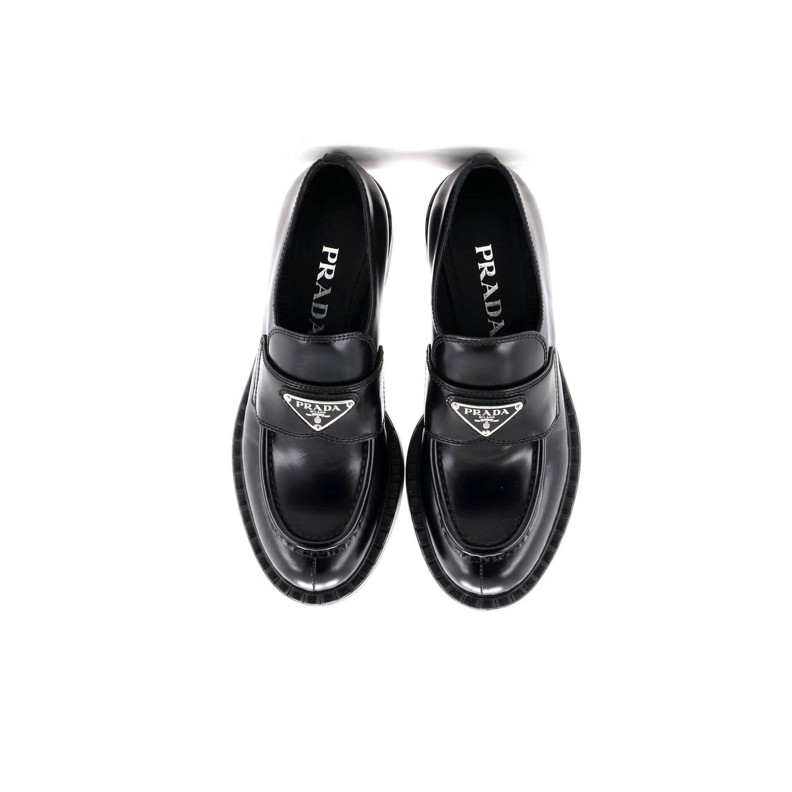 Prada Women'S Triangle Logo Loafers Spazzolato Leather