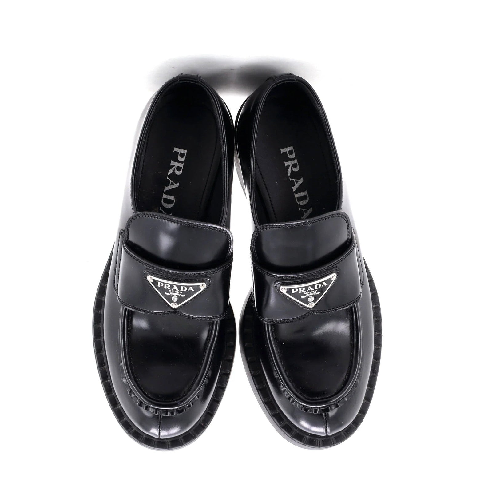 Prada Women'S Triangle Logo Loafers Spazzolato Leather