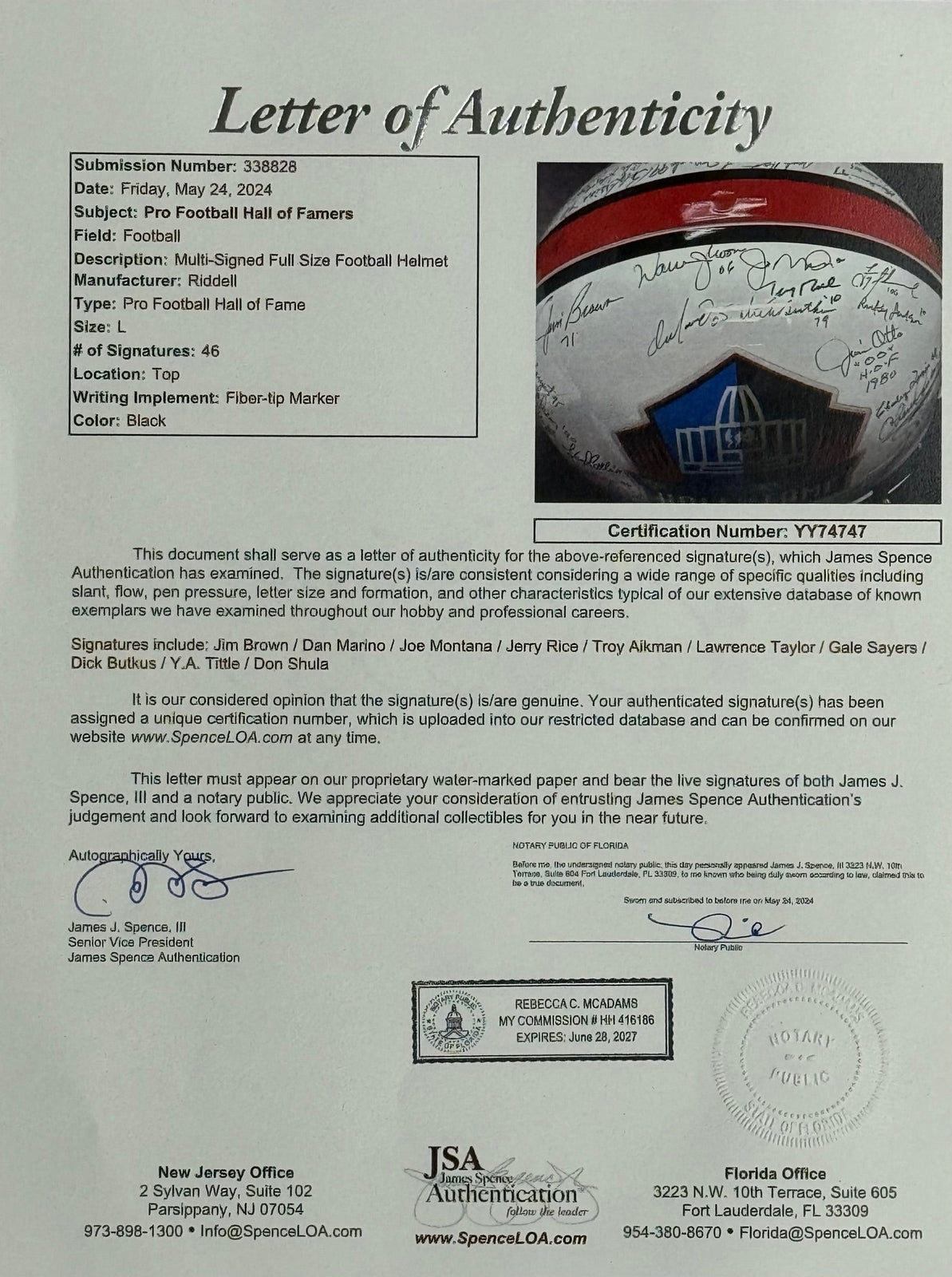 Pro Football Hall Of Fame Signed Authentic Hall Of Fame Helmet (Jsa)