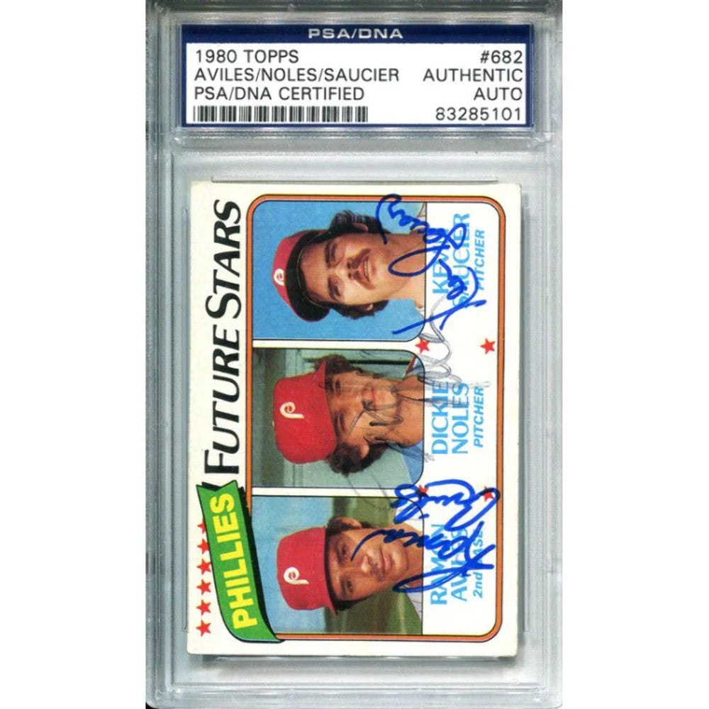 Ramon Aviles Dickie Noles & Kevin Saucier Autographed 1980 Topps Card