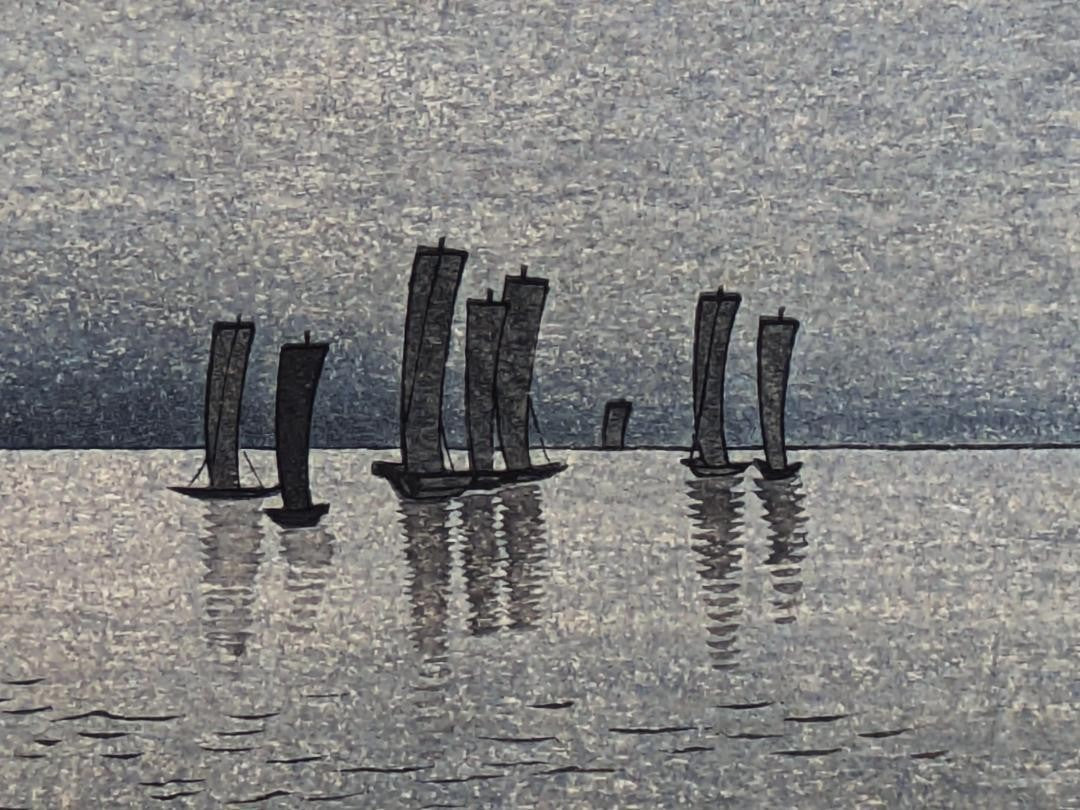 Rare Japanese Woodblock Print "Sailing Boats" By Koson Ohara (Shoson), C. Meiji