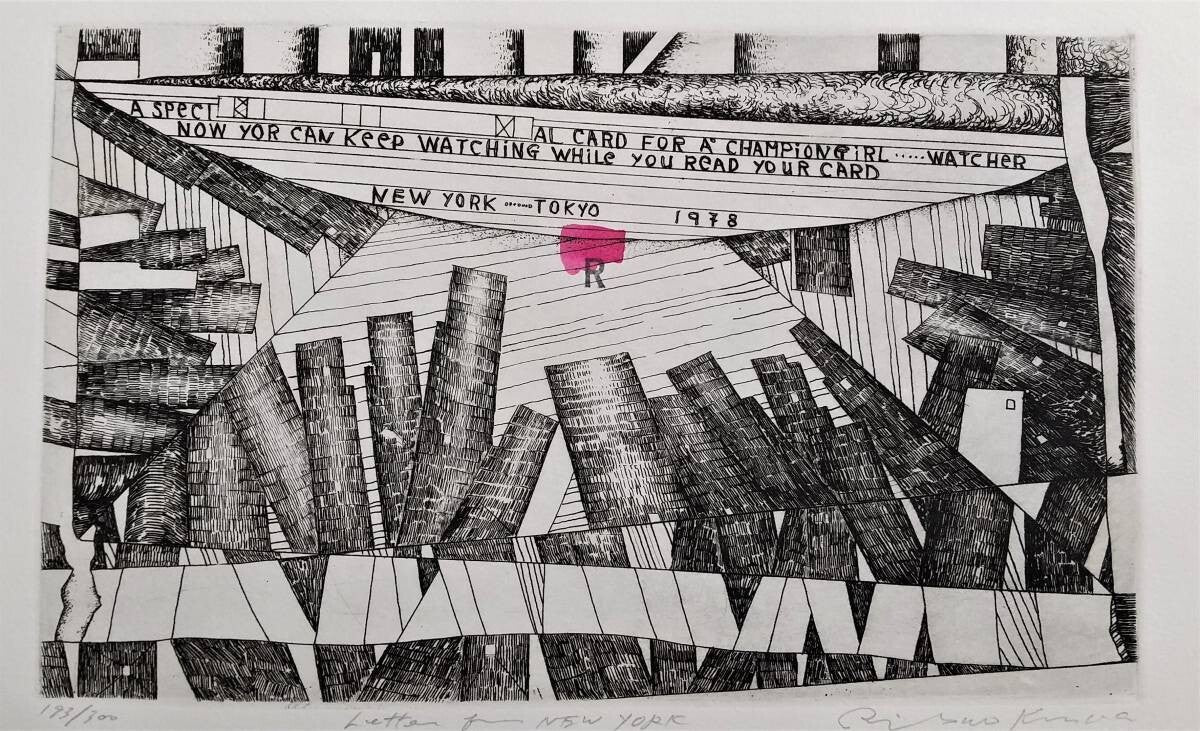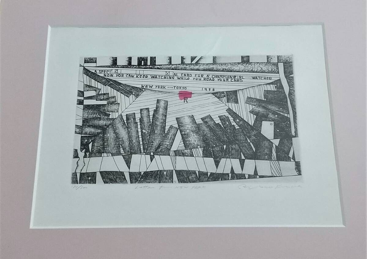 Risaburo Kimura Signed Original Etching Print Letter For New York Framed 1978