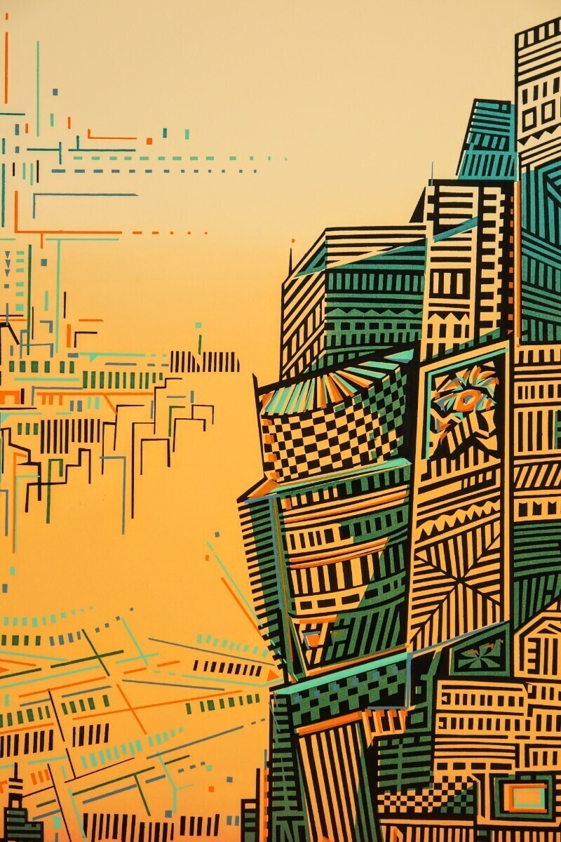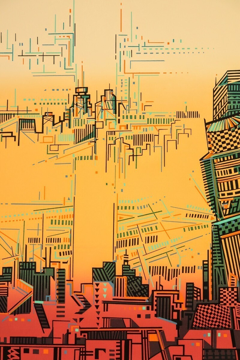 Risaburo Kimura Signed Original Serigraph Screenprint Wall St. New York Framed