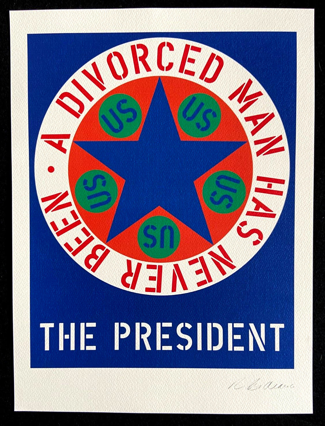 Robert Indiana "President" The lithograph was printed by the Guggenheim Museum in 1998 in 225 hand numbered copies. Robert Indiana signature on the plate. The work measures 30 x 40 cm Guggenheim Museum, Artists Rights Society Robert Indiana "President" The lithograph was printed by the Guggenheim Museum in 1998 in 225 hand numbered copies. Robert Indiana signature on the plate. The work measures 30 x 40 cm Guggenheim Museum, Artists Rights Society Robert Indiana "Pres......