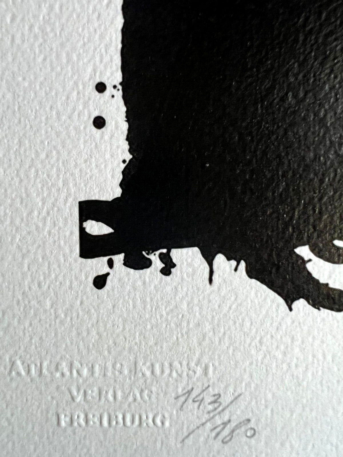 Robert Motherwell Lithograph COA Signed Numbered In Pencil Limited Robert Motherwell "The kiss " Full sheet printed chromolitography in 1990 In 180 specimens from Atlantis Verlag, Freiburg 27 x 40 cm Signature Robert Motherwell on the slab Dry and authentic stamp of the publishing house Atlantis Kunst Verlag Freiburg Robert Motherwell "The kiss" Full sheet printed chromolitography in 1990In 180 specimens from Atlantis Verlag, Freiburg 27 x 40 cm Signature Robert Motherwell on the slab Dry and authentic stamp of the publishing house Atlantis Kunst Verlag Freiburg