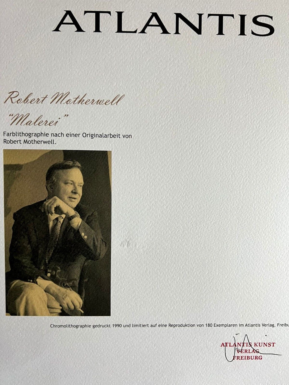Robert Motherwell Lithograph COA Signed Numbered In Pencil Limited Robert Motherwell "The kiss " Full sheet printed chromolitography in 1990 In 180 specimens from Atlantis Verlag, Freiburg 27 x 40 cm Signature Robert Motherwell on the slab Dry and authentic stamp of the publishing house Atlantis Kunst Verlag Freiburg Robert Motherwell "The kiss" Full sheet printed chromolitography in 1990In 180 specimens from Atlantis Verlag, Freiburg 27 x 40 cm Signature Robert Mo......