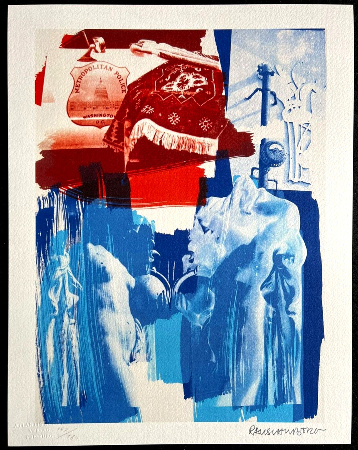 Robert Rauschenberg Lithograph COA Signed Op Numbered By Hand "Blu" Robert Rauschenberg "Blue " Chromolithography printed in 1992 in 180 specimens by Atlantis Verlag, Freiburg 32 x 41 cm Signature Robert Rauschenberg on the slab COA signed in pen and stamped Dry and authentic stamp of the publishing house The progressive number could be different from the published one. Atlantis Kunst Verlag Freiburg Robert Rauschenberg "Blue" Chromolithography printed in 1992 in 180 specimens by Atlantis Verlag, Freiburg 32 x 41 cm Signature Robert Rauschenbergon the slabCOA signed in pen and stamped Dry and authentic stamp of the publishing house The progressive number could be different from the published one. Atlantis Kunst Verlag Freiburg