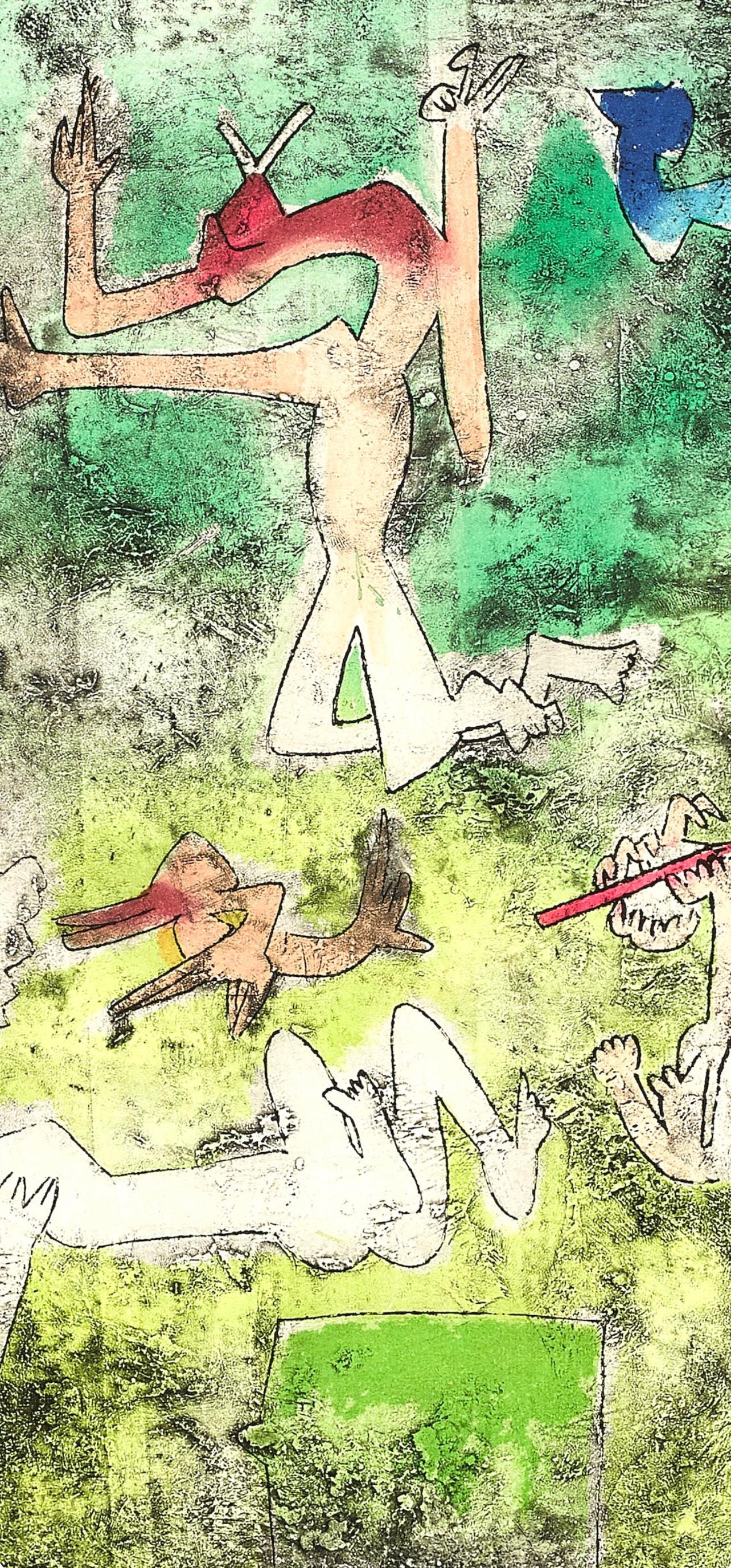 ROBERTO MATTA (1912-2002) Chilean-born French Surrealist/Abstract Expressionist Painter is without a doubt one of the most important 20th century Latin American artists, who along with Dali, Miro, Max Ernst, Yves Tanguy, Man Ray, and Magritte, exercised a great influence on American Surrealism. These works express the influence of the collective subconscious icons, South American & popular culture, and psycho-sexuality. Their undeniable beauty keeps the eye engaged in visual details even as the mind ponders these totems and taboos. These prints also reveal Matta's true genius as a printmaker, incorporating a variety of print technique that produces a final image that is complex, rich and mysteriously beautiful.