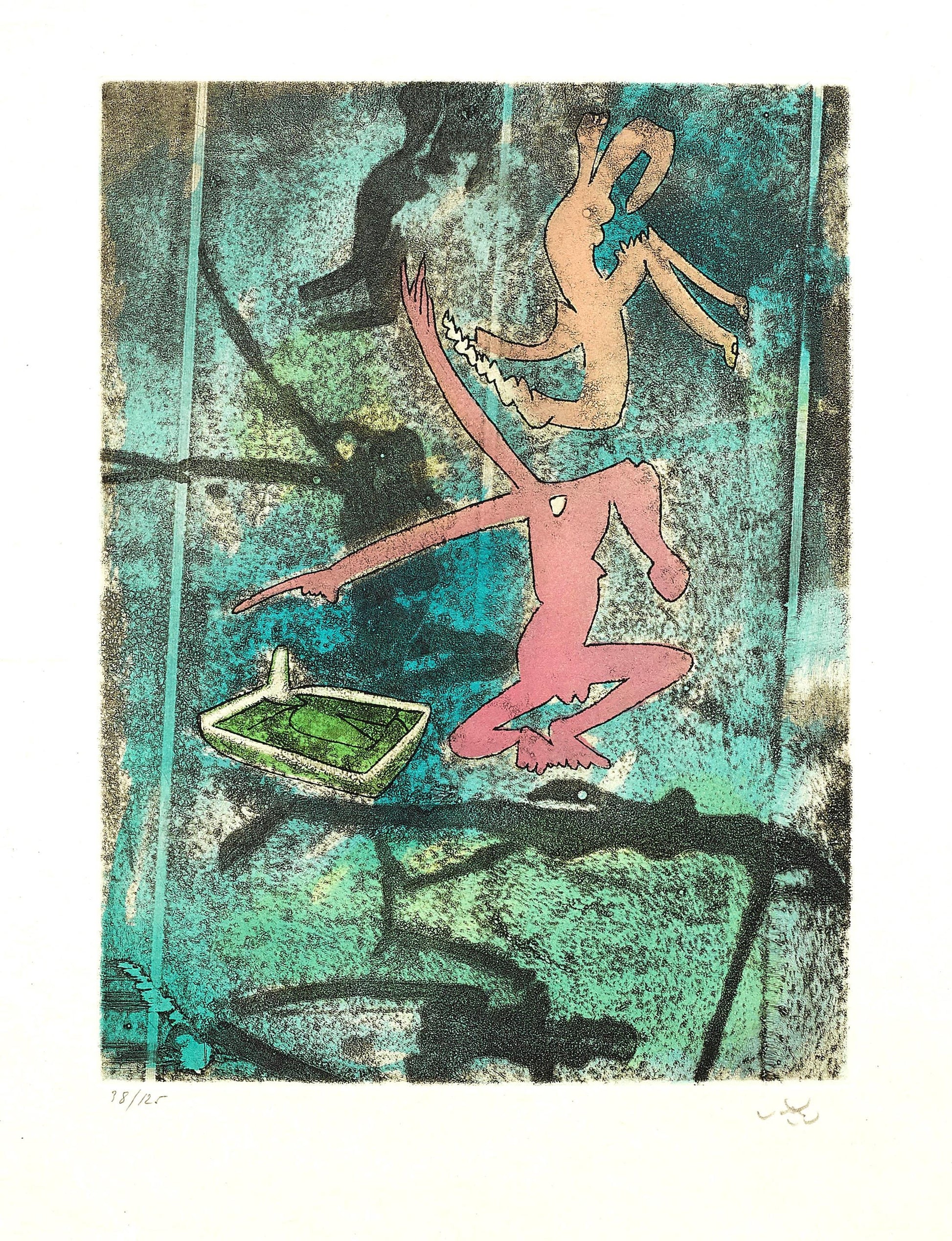 ROBERTO MATTA (1912-2002) Chilean-born French Surrealist/Abstract Expressionist Painter is without a doubt one of the most important 20th century Latin American artists, who along with Dali, Miro, Max Ernst, Yves Tanguy, Man Ray, and Magritte, exercised a great influence on American Surrealism. These works express the influence of the collective subconscious icons, South American & popular culture, and psycho-sexuality. Their undeniable beauty keeps the eye engaged in visual details even as the mind ponders these totems and taboos. These prints also reveal Matta's true genius as a printmaker, incorporating a variety of print technique that produces a final image that is complex, rich and mysteriously beautiful.