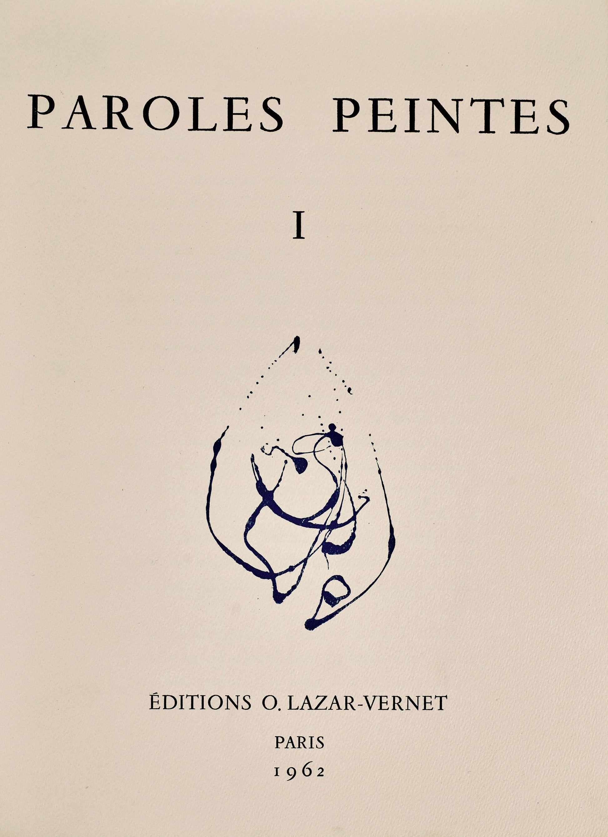 Etching on vlin Johannot dArches paper. Paper size: 15.25 x 11.5 inches. Excellent condition. Inscription: Unsigned and unnumbered, as issued. Notes: From the album, Paroles peintes I, 1962. Published by ditions O. Lazar-Vernet, Paris, under the direction of Odette Lazar-Vernet, Paris; printed by Maitres Imprimeurs, en Taille-Douce Capelle-Lacouriere, Leblanc-Robbe-Visat, Paris, December 5, 1962. Excerpted from the volume (translated from French), Printing completed, December 5, 1962 on the presses of the Maitres Imprimeurs, en Taille-Douce Capelle-Lacouriere Leblanc-Robbe-Visat for engravings, and for typography, on the presses of the Maitre Imprimeur, Theo Schmied; Jacques David, providing the layout for this portfolio with fourteen original etchings and fourteen unpublished poems, two hundred examples were drawn of which, 1 example on papier japon nacr, bearing the number 1, accompanied by a suite on papier japon of etchings signed by the artists, a second deuxime suite of 13 etchings from engraved, striped and inked coppers; 14 examples on papier japon nacr, numbered from 2 to 15, accompanied by a suite of the 14 etchings on papier japon signed by the artists, a second suite of 13 deuxime etchings; 35 examples on papier Auvergne by hand, numbered from 16 to 50, accompanied by a suite of the 14 etchings on Richard-de-Bas, signed by the artists; 150 examples on papier Johannot, numbered from 51 to 200. In addition, it was shot on Johannot 28 non-trade nominative examples, marked H.C. From 1 to 28; 5 examples numbered for employees from I to V; and, in large format, 25 examples of all engravings numbered from I to XXV reserved for the artists.