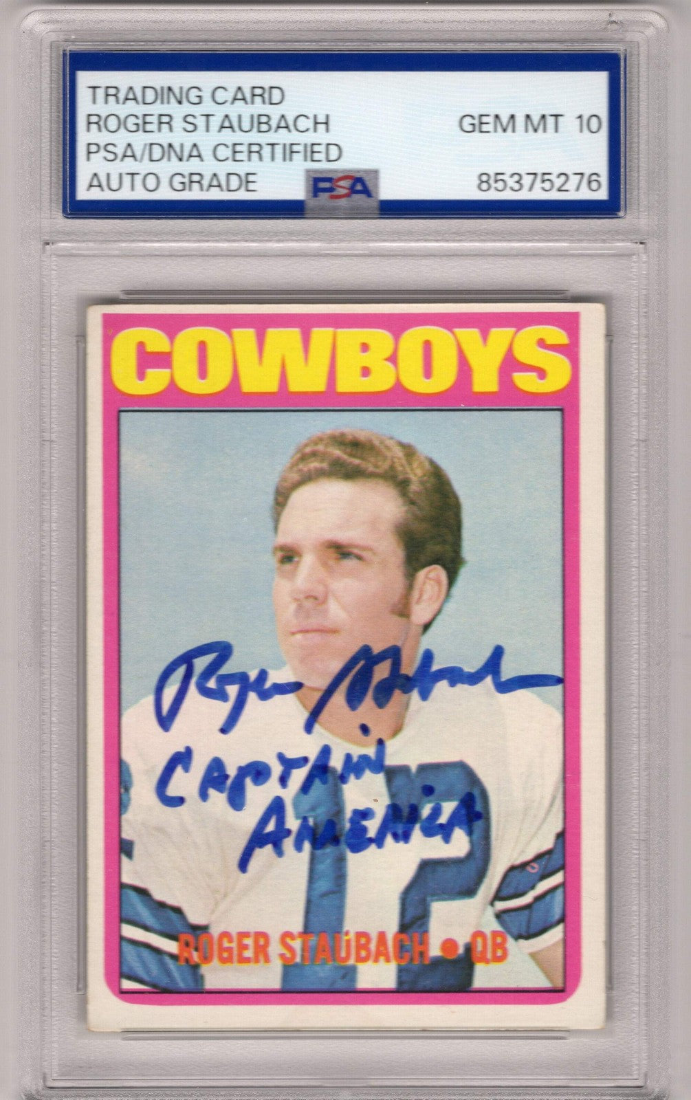 Roger Staubach 1972 Topps #200 Autographed Card Psa Auto Grade 10