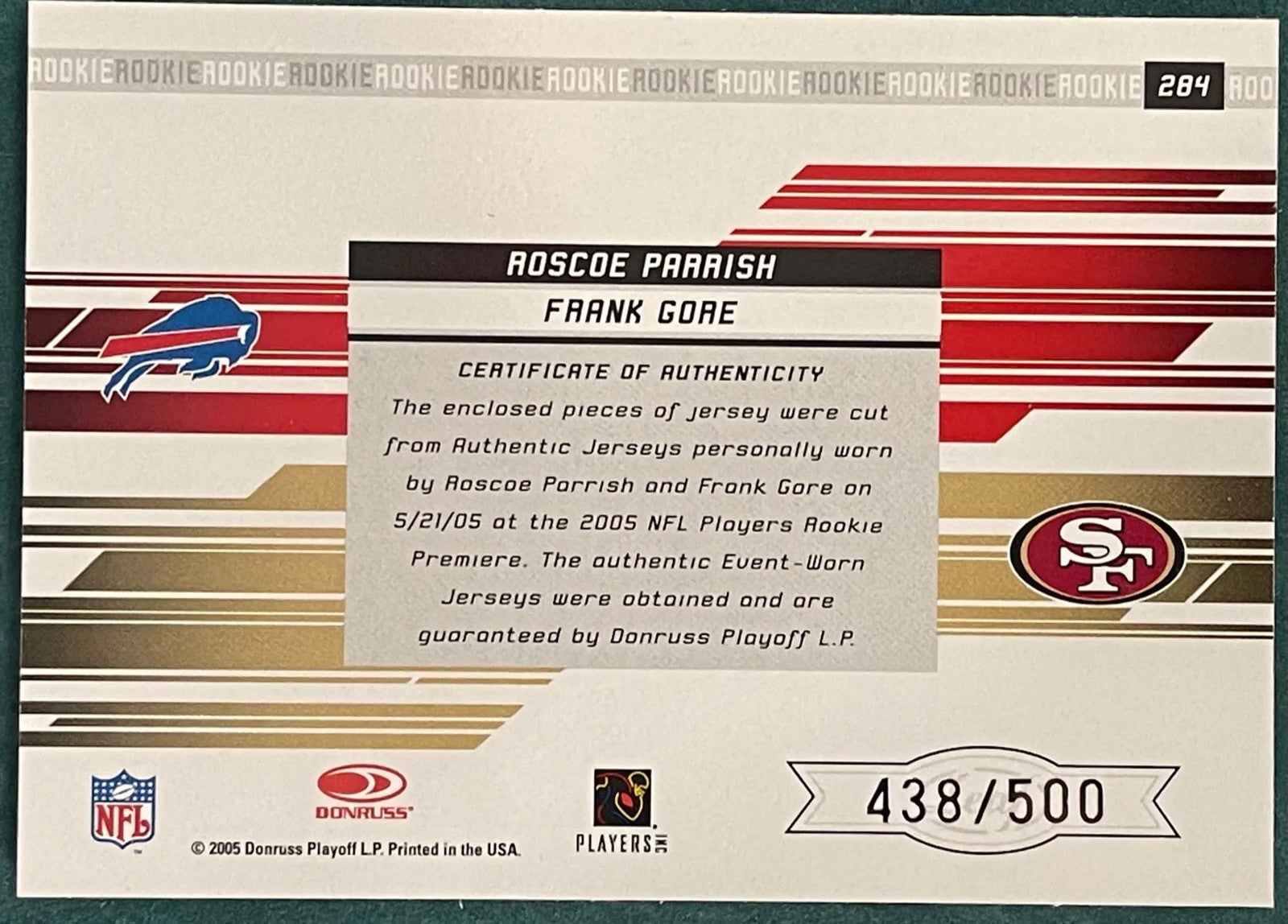Roscoe Parris Frank Gore 2005 Donruss Rookies &