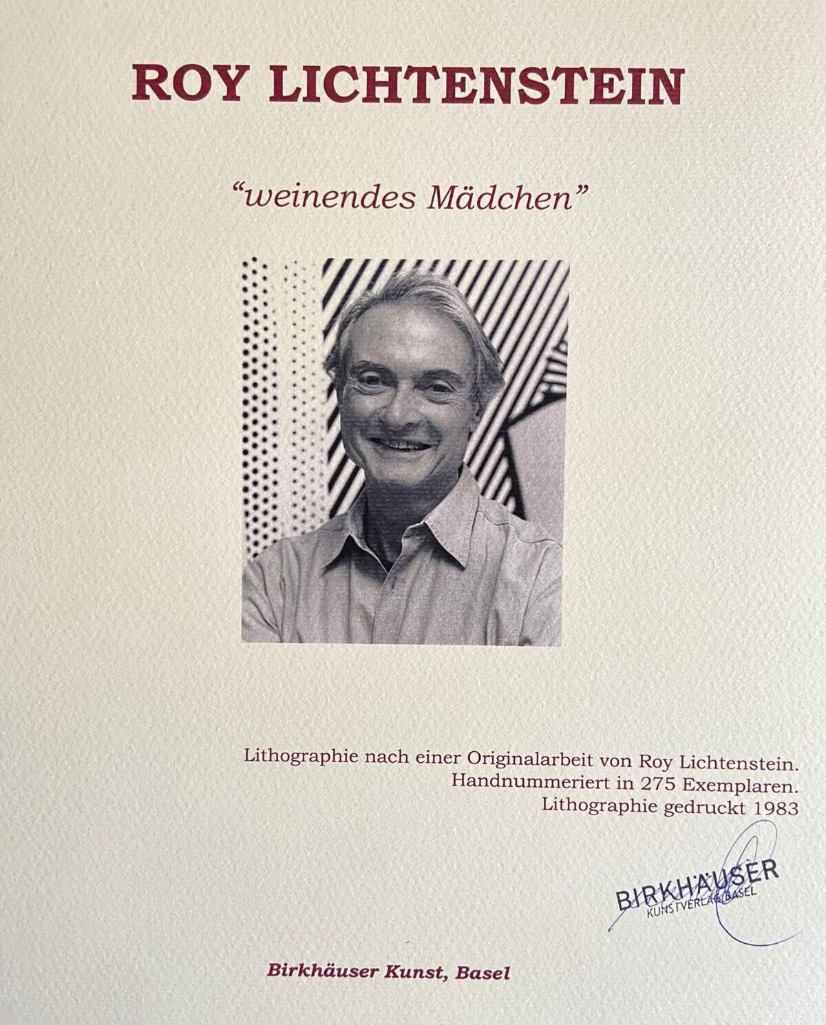 Roy Lichtenstein Lithograph Coa e Numerata A Mano Firmata Certificata Roy Lichtenstein "Girl crying " Lithograph of an work by Roy Lichtenstein, printed in 1983. 32 x 33 cm 275 hand numbered specimens Roy Lichtenstein signature on the slab The progressive number could be different from the published one. Birkhuser Kunstverlag, Basel Roy Lichtenstein represents people and objects of everyday life by transforming them into art, extrapolating a scene from its context ......
