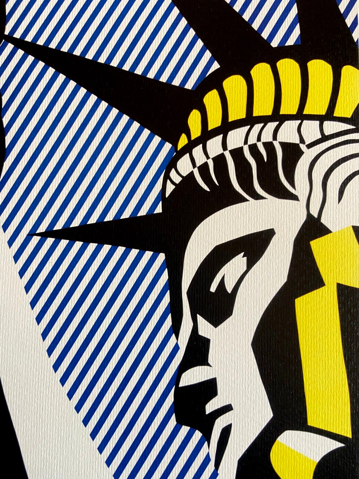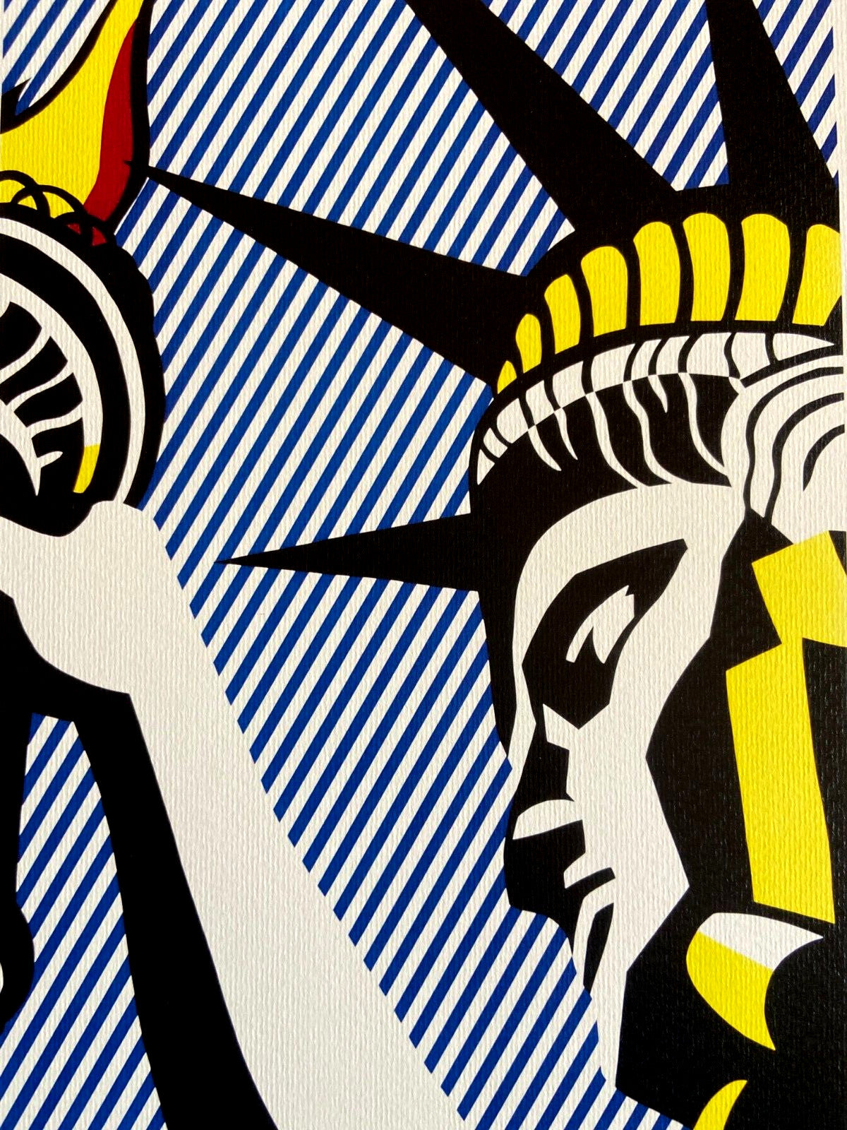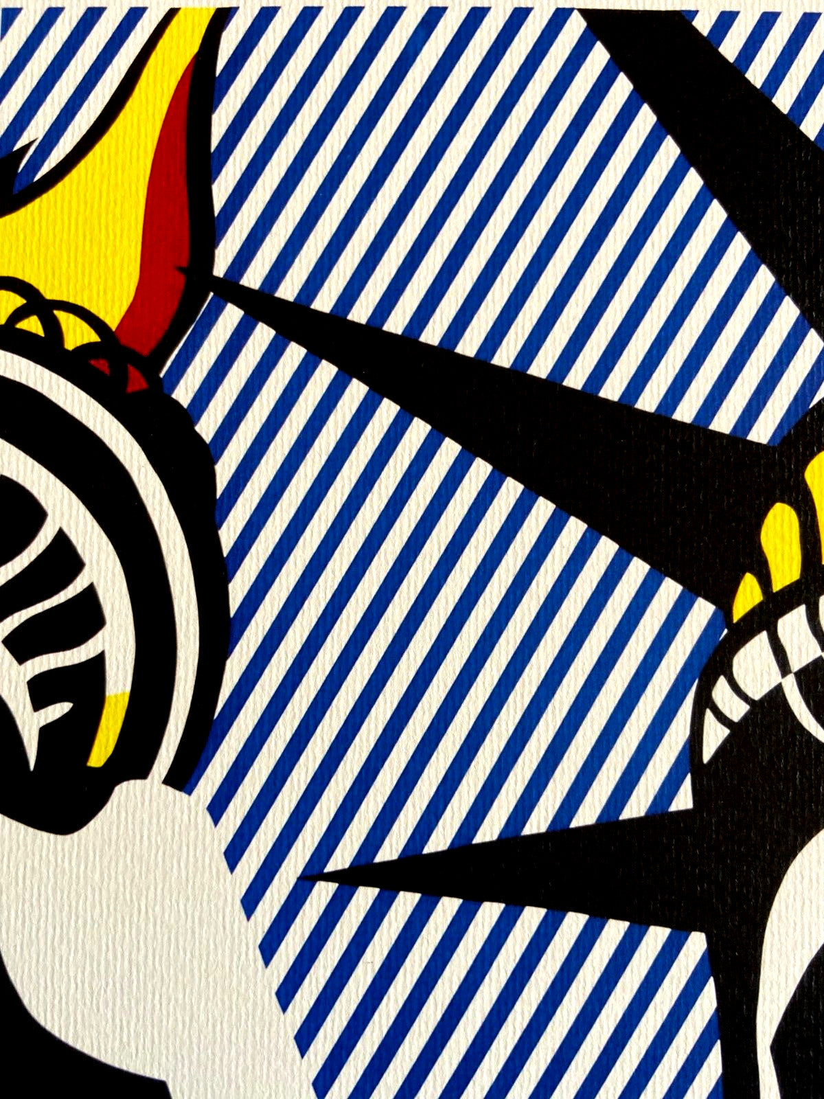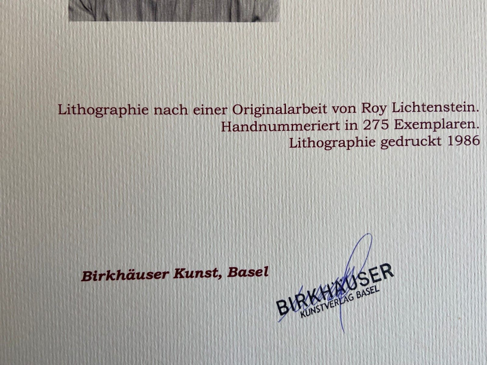 Roy Lichtenstein Lithograph Signed Numbered Limited Edition (KAWS) Roy Lichtenstein "Statue of freedom " Lithograph of an work by Roy Lichtenstein, printed in 1986. 30 x 43 cm 275 hand numbered specimens signed on the plate Birkhuser Kunstverlag, Basel Roy Lichtenstein represents people and everyday objects transforming them into art, extrapolating a scene from its context and giving it a completely renewed meaning, with the inclusion of texts and onomatopoeias, in addition to the distinctive dotted effect created using the Ben-Day dots technique. This is the foundation of American Pop Art itself, whose artists are inspired by subjects of mass culture and objects of common use, isolating them from their natural environment to transform them into the new symbols of the consumerist society devoted to excess: the same objects they were already deeply imprinted in the collective imagination, thanks to the pressing publicity that invaded the communications of the main mass media. Lithograph of an work by Roy Lichtenstein, printed in 1986. Roy Lichtenstein represents people and everyday objects transforming them into art, extrapolating a scene from its context and giving it a completely renewed meaning, with the inclusion of texts and onomatopoeias, in addition to the distinctive dotted effect created using the Ben-Day dots technique. This is the foundation of American Pop Art itself, whose artists are inspired by subjects of mass culture and objects of common use, isolating them from their natural environment to transform them into the new symbols of the consumerist society devoted to excess: the same objects they were already deeply imprinted in the collective imagination, thanks to the pressing publicity that invaded the communications of the ma