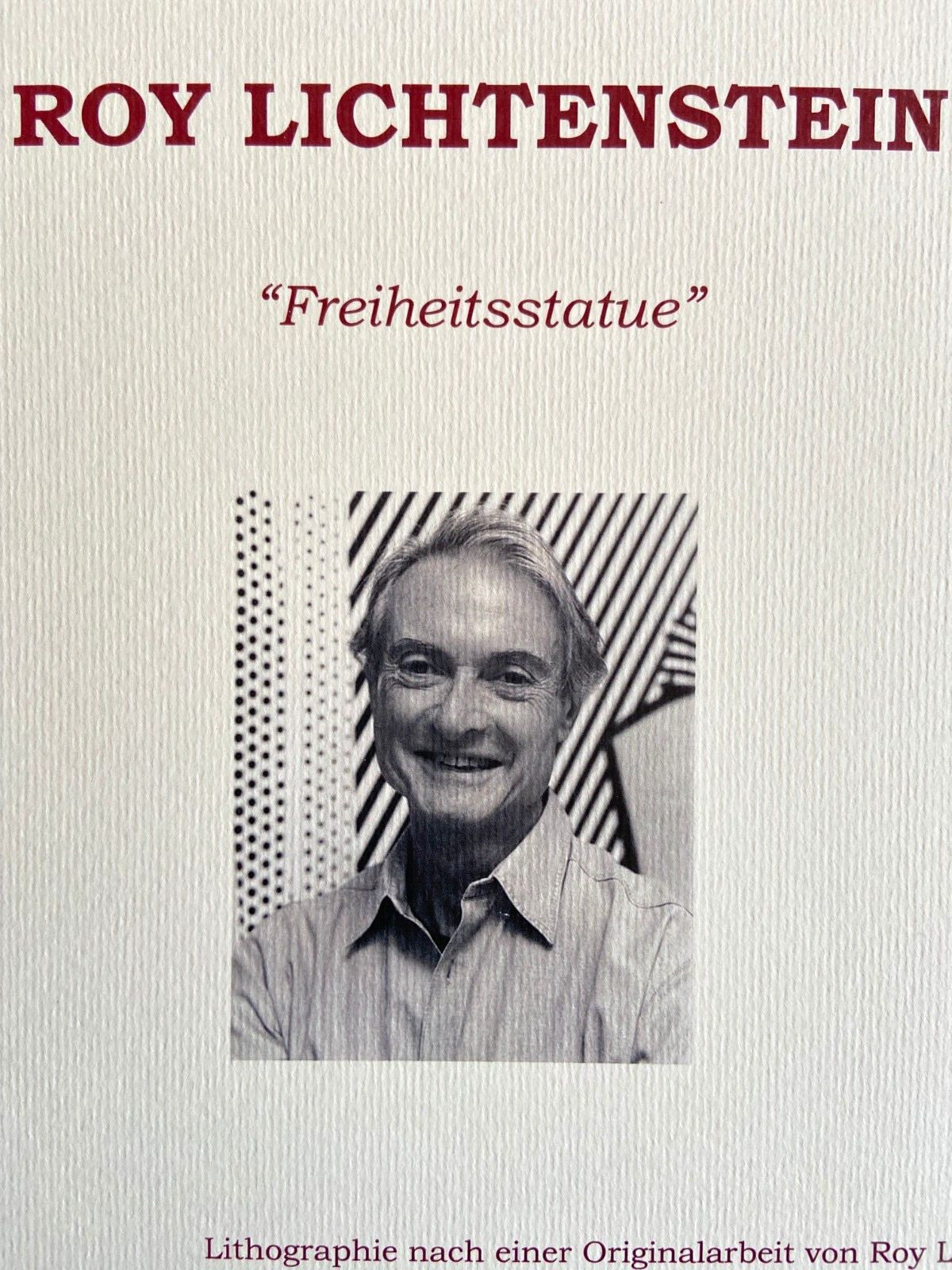 Roy Lichtenstein Lithograph Signed Numbered Limited Edition (KAWS) Roy Lichtenstein "Statue of freedom " Lithograph of an work by Roy Lichtenstein, printed in 1986. 30 x 43 cm 275 hand numbered specimens signed on the plate Birkhuser Kunstverlag, Basel Roy Lichtenstein represents people and everyday objects transforming them into art, extrapolating a scene from its context and giving it a completely renewed meaning, with the inclusion of texts and onomatopoeias, i......