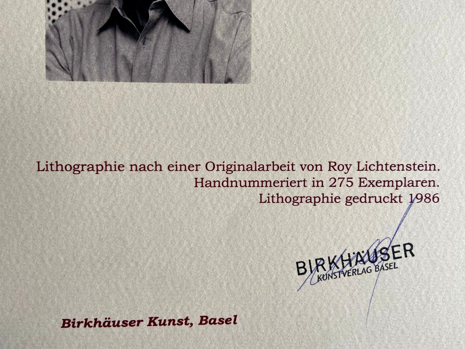 Roy Lichtenstein Lithograph Signed Numbered By Hand 275 Ex @@ Roy Lichtenstein "Nurse " Lithograph of an work by Roy Lichtenstein, printed in 1986. 32 x 32 cm 275 hand numbered specimens signed on the plate Birkhuser Kunstverlag, Basel Roy Lichtenstein represents people and everyday objects transforming them into art, extrapolating a scene from its context and giving it a completely renewed meaning, with the inclusion of texts and onomatopoeias, in addition to the distinctive dotted effect created using the Ben-Day dots technique. This is the foundation of American Pop Art itself, whose artists are inspired by subjects of mass culture and objects of common use, isolating them from their natural environment to transform them into the new symbols of the consumerist society devoted to excess: the same objects they were already deeply imprinted in the collective imagination, thanks to the pressing publicity that invaded the communications of the main mass media. Lithograph of an work by Roy Lichtenstein, printed in 1986. Roy Lichtenstein represents people and everyday objects transforming them into art, extrapolating a scene from its context and giving it a completely renewed meaning, with the inclusion of texts and onomatopoeias, in addition to the distinctive dotted effect created using the Ben-Day dots technique. This is the foundation of American Pop Art itself, whose artists are inspired by subjects of mass culture and objects of common use, isolating them from their natural environment to transform them into the new symbols of the consumerist society devoted to excess: the same objects they were already deeply imprinted in the collective imagination, thanks to the pressing publicity that invaded the communications of the ma