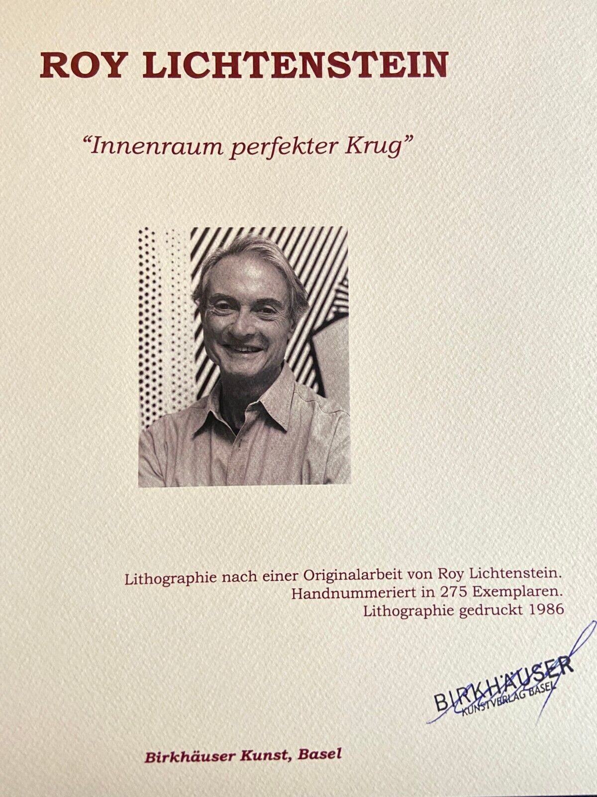 Lithograph of an original work by Roy Lichtenstein, printed in 1986.