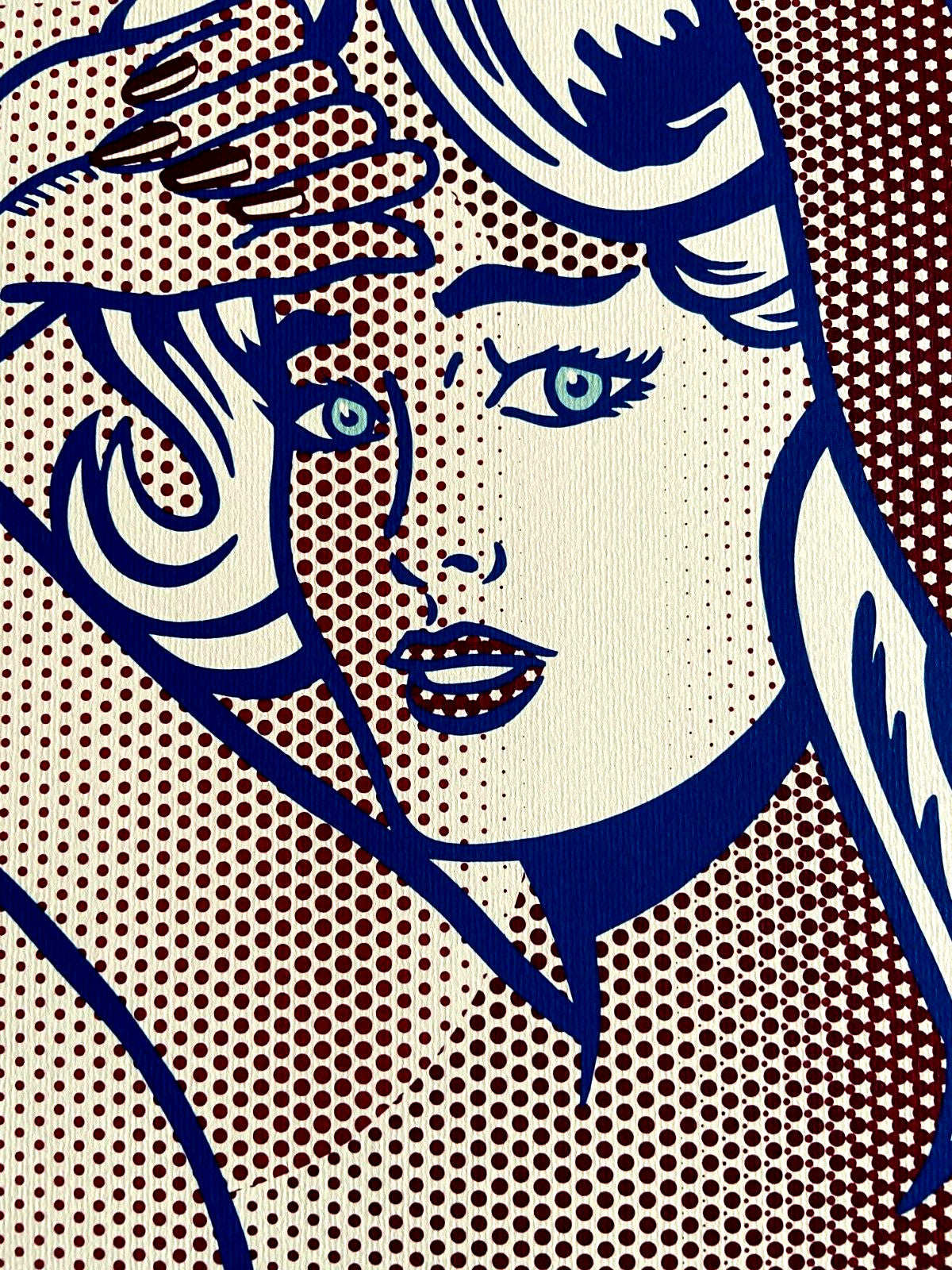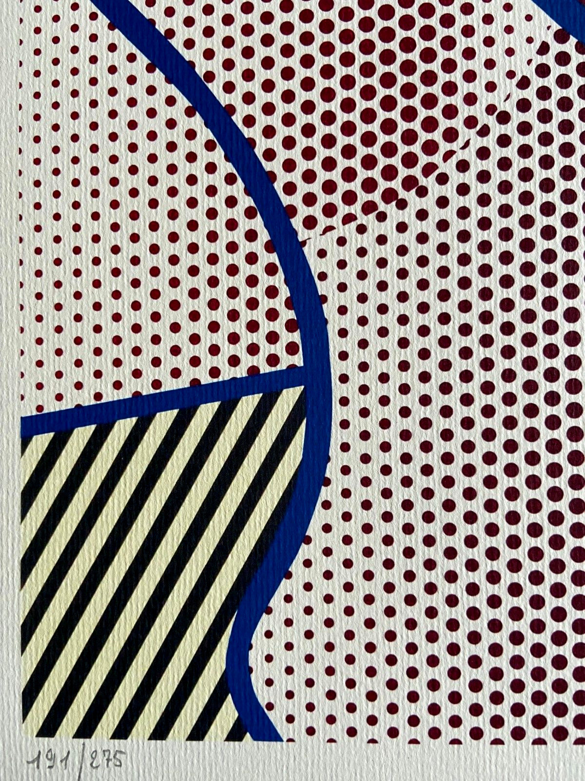 Roy Lichtenstein "Nude aux cheveux bleus " Lithographie d'une uvre e de Roy Lichtenstein, imprime en 1986. 30 x 47 cm 275 spcimens numrots la main Sign sur la dalle Birkhuser Kunstverlag, Ble Roy Lichtenstein reprsente les gens et les objets de la vie quotidienne en les transformant en art, en extrapolant une scne de son contexte d'origine et en lui donnant un sens compltement renouvel, avec l'insertion de textes et d'onomatope, en plus de l'effet pointill distinctif fait par la technique des points Ben-Day. Ceci est le fondement du mme pop art amricain, dont les artistes sont inspirs par des sujets de culture de masse et d'objets couramment utiliss, les isolant de leur environnement naturel pour les transformer en les nouveaux symboles de la socit de consommation consacrs un excs: les mmes objets taient dj profondment impressionns dans l'imagination collective, grce la publicit pressante qui a envahi les communications des principaux mdias de masse. Lithographie d'une uvre e de Roy Lichtenstein, imprime en 1986. Roy Lichtenstein reprsente les gens et les objets de la vie quotidienne en les transformant en art, en extrapolant une scne de son contexte d'origine et en lui donnant un sens compltement renouvel, avec l'insertion de textes et d'onomatope, en plus de l'effet pointill distinctif fait par la technique des points Ben-Day. Ceci est le fondement du mme pop art amricain, dont les artistes sont inspirs par des sujets de culture de masse et d'objets couramment utiliss, les isolant de leur environnement naturel pour les transformer en les nouveaux symboles de la socit de consommation consacrs un excs: les mmes objets taient dj profondment impressionns dans l'imagination collective, grce la publicit