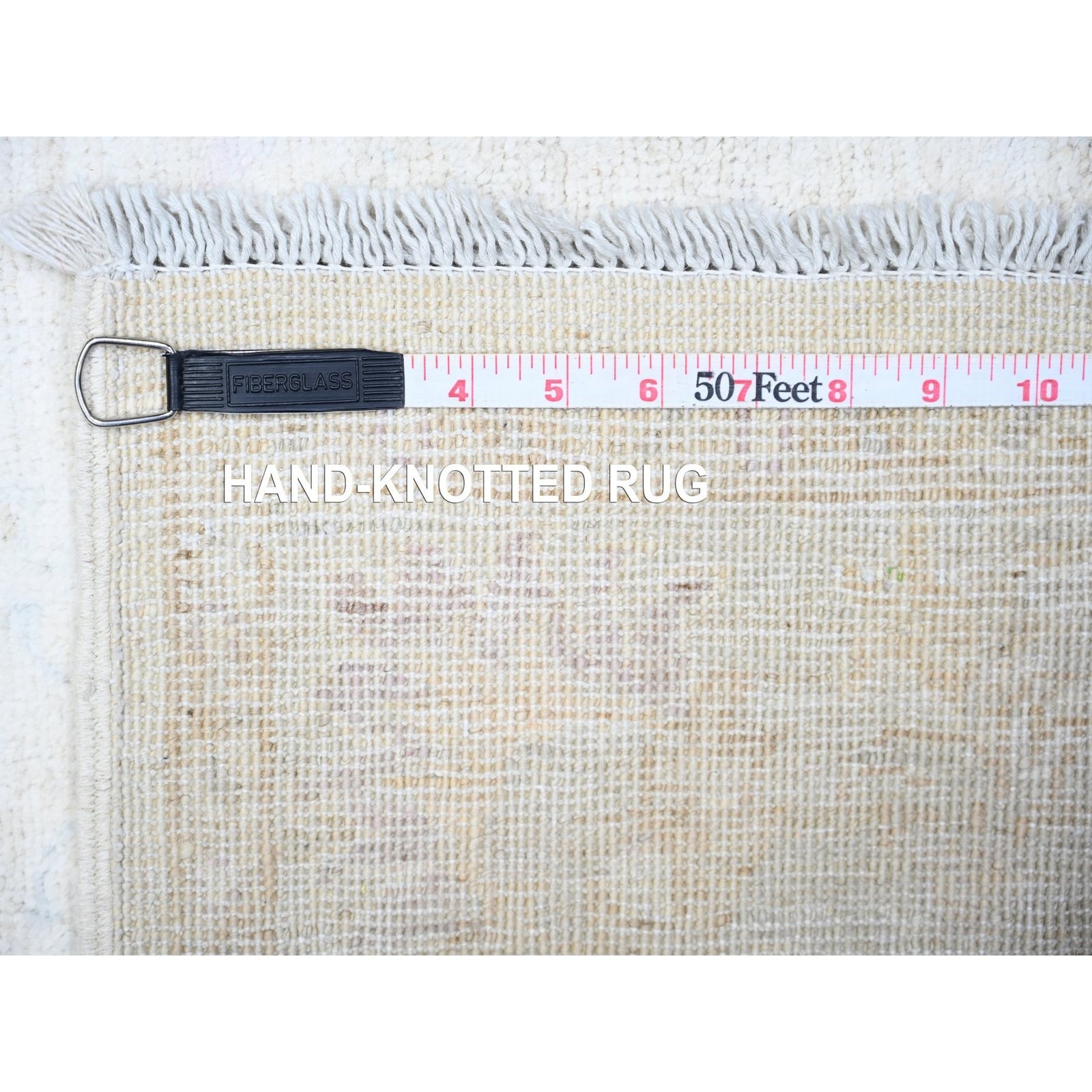 Rug 3'10"x11'2" White Diamond Hand Knotted White Wash Peshawar Runner
