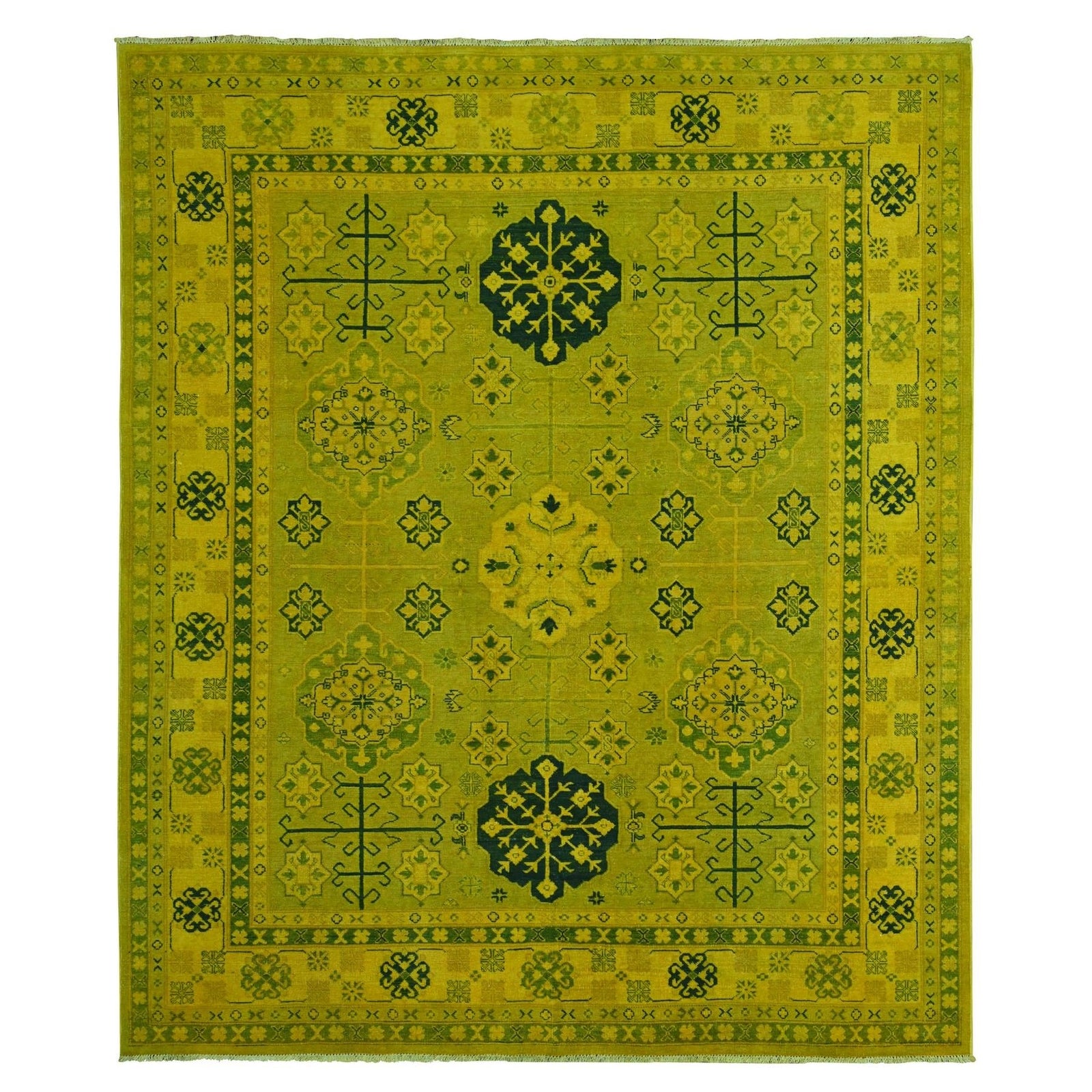 This listing features Rug 8'1"x9'5" Golden Yellow Overdyed Kazak Star Design Wool Hand Knotted. Item specifics are provided below.