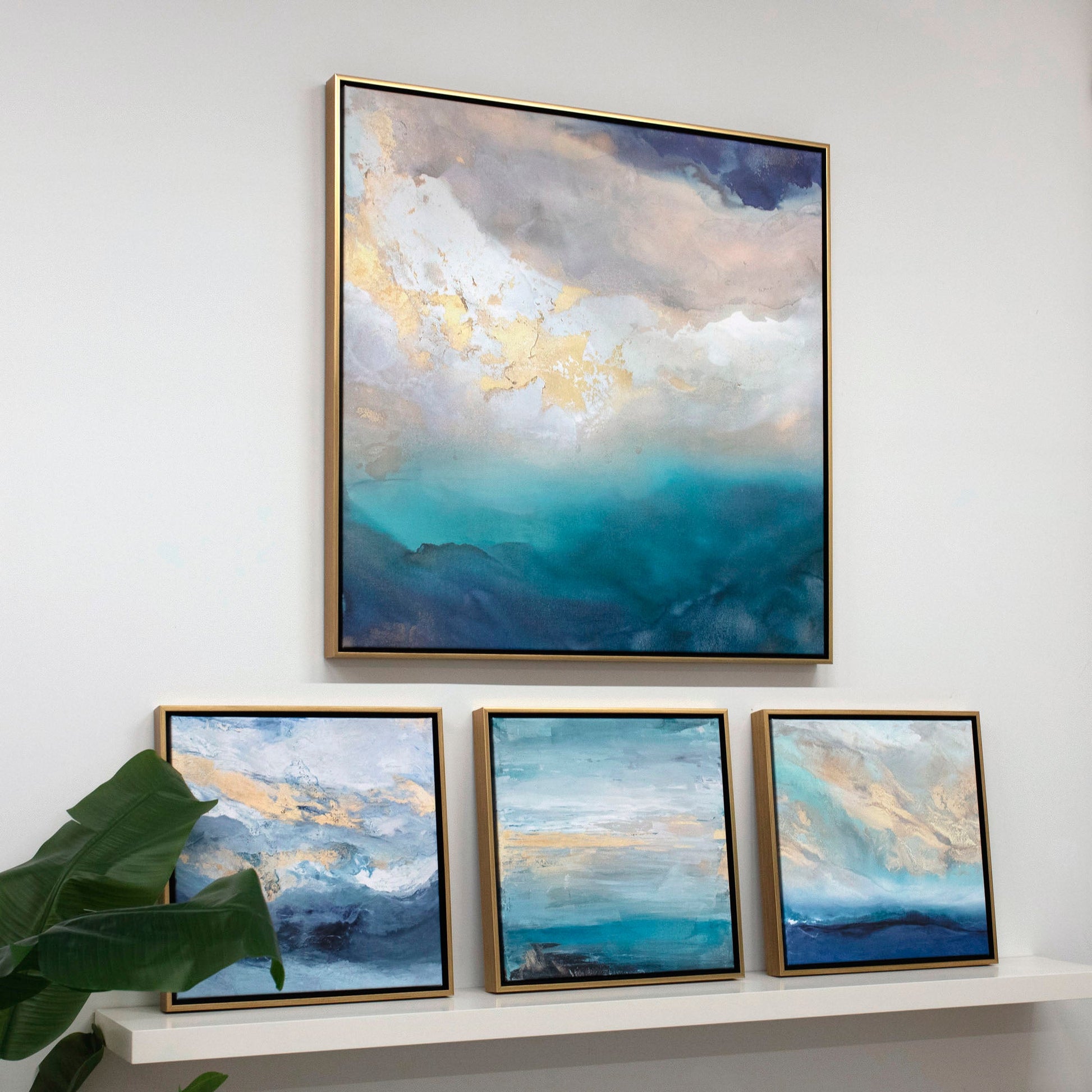 This canvas print isgallery wrapped over stretcher bars and finished in a gold floater frame.Comes ready to hang.