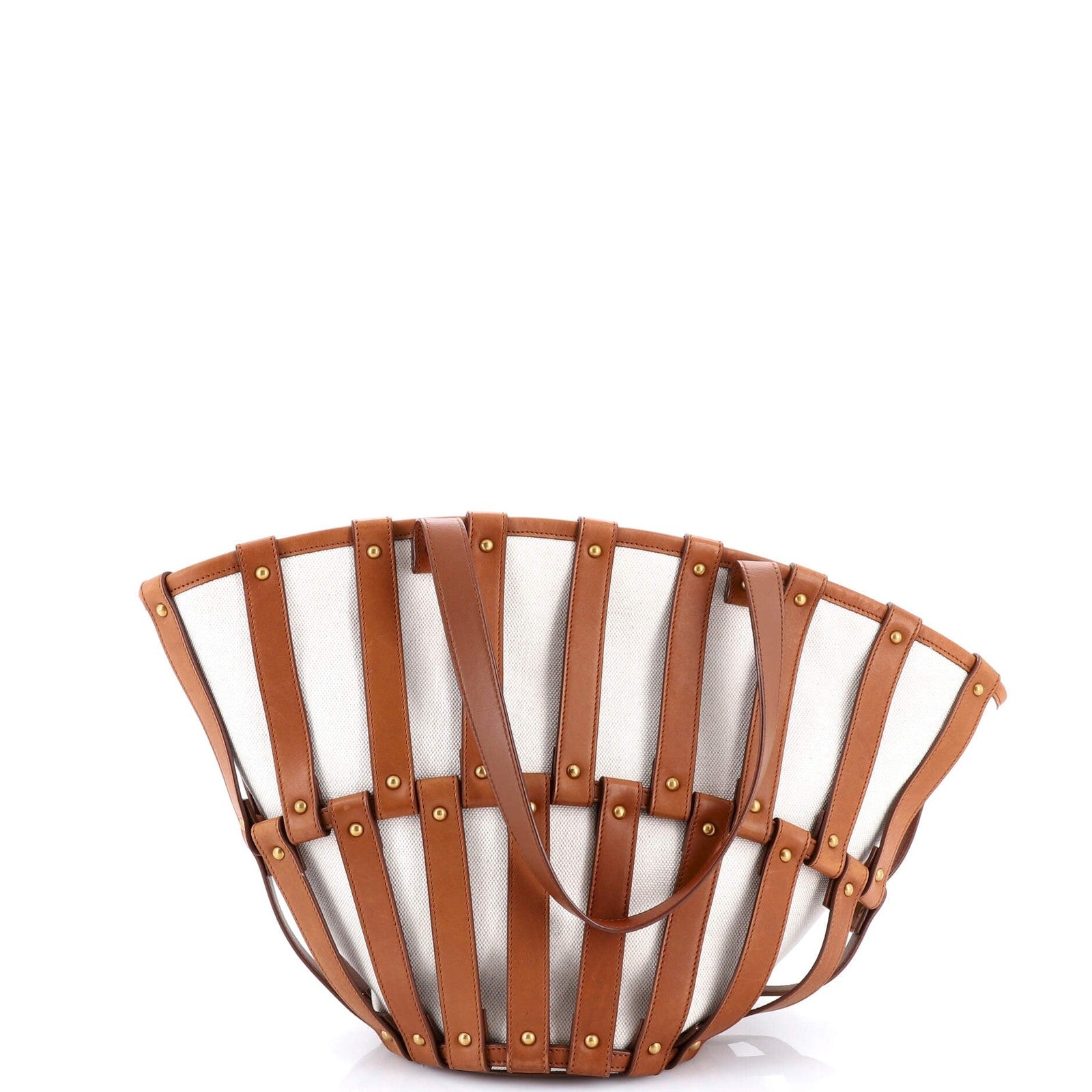 Saint Laurent Beatrix Panier Cut Out Tote Canvas With Leather