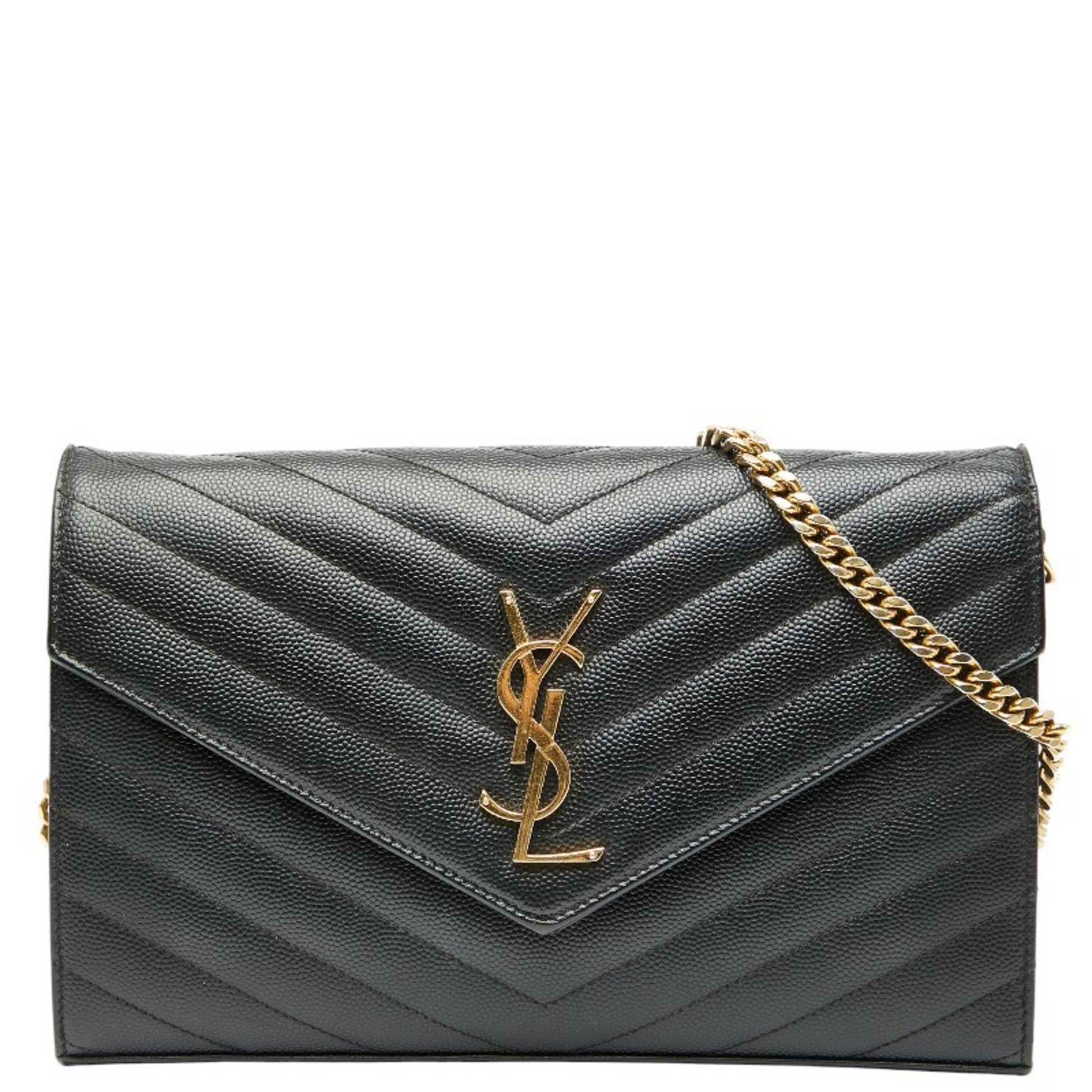 Saint Laurent Cassandra Ysl Logo Chain Wallet In Black Leather