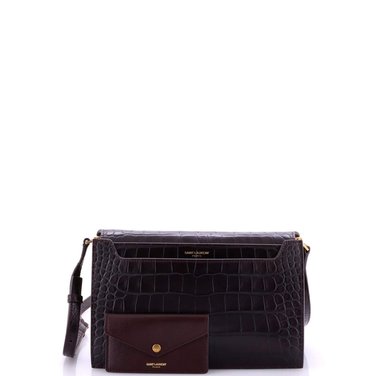 Saint Laurent Catherine Crossbody Bag Crocodile Embossed Leather