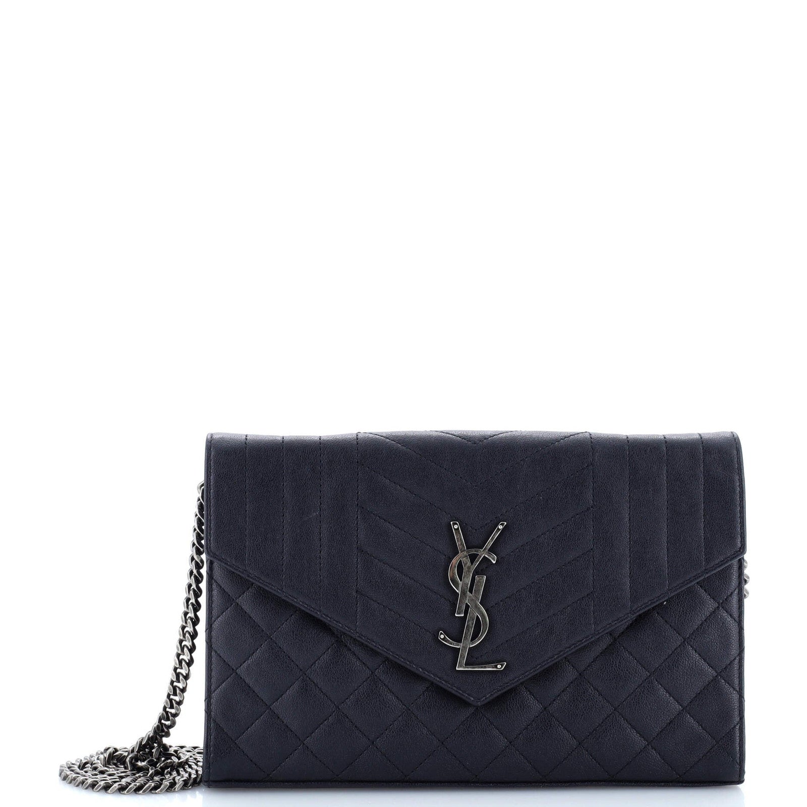 Saint Laurent Classic Monogram Chain Wallet Mixed Matelasse Leather Medium