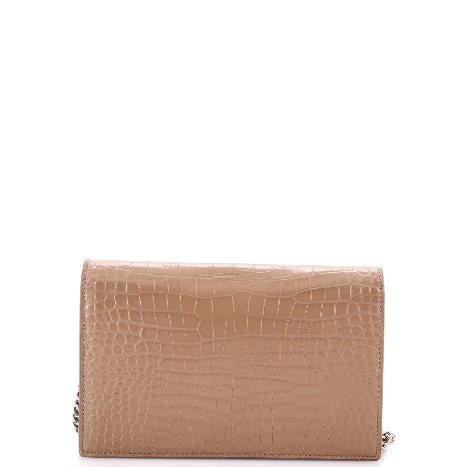 Saint Laurent Classic Monogram Tassel Chain Wallet Crocodile Embossed Leather