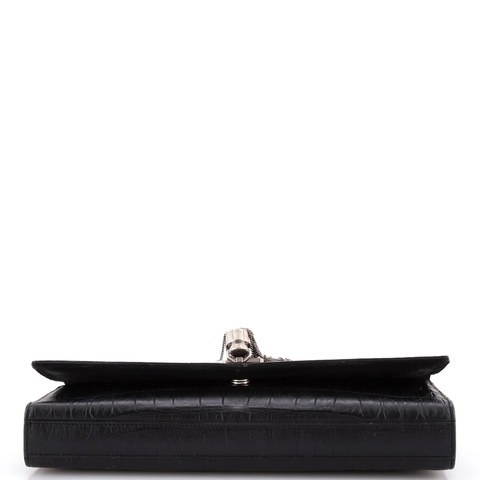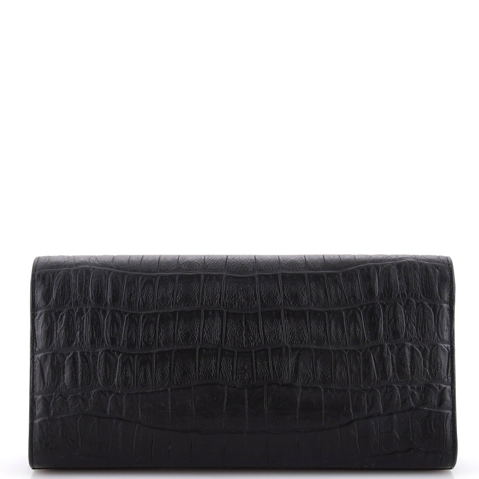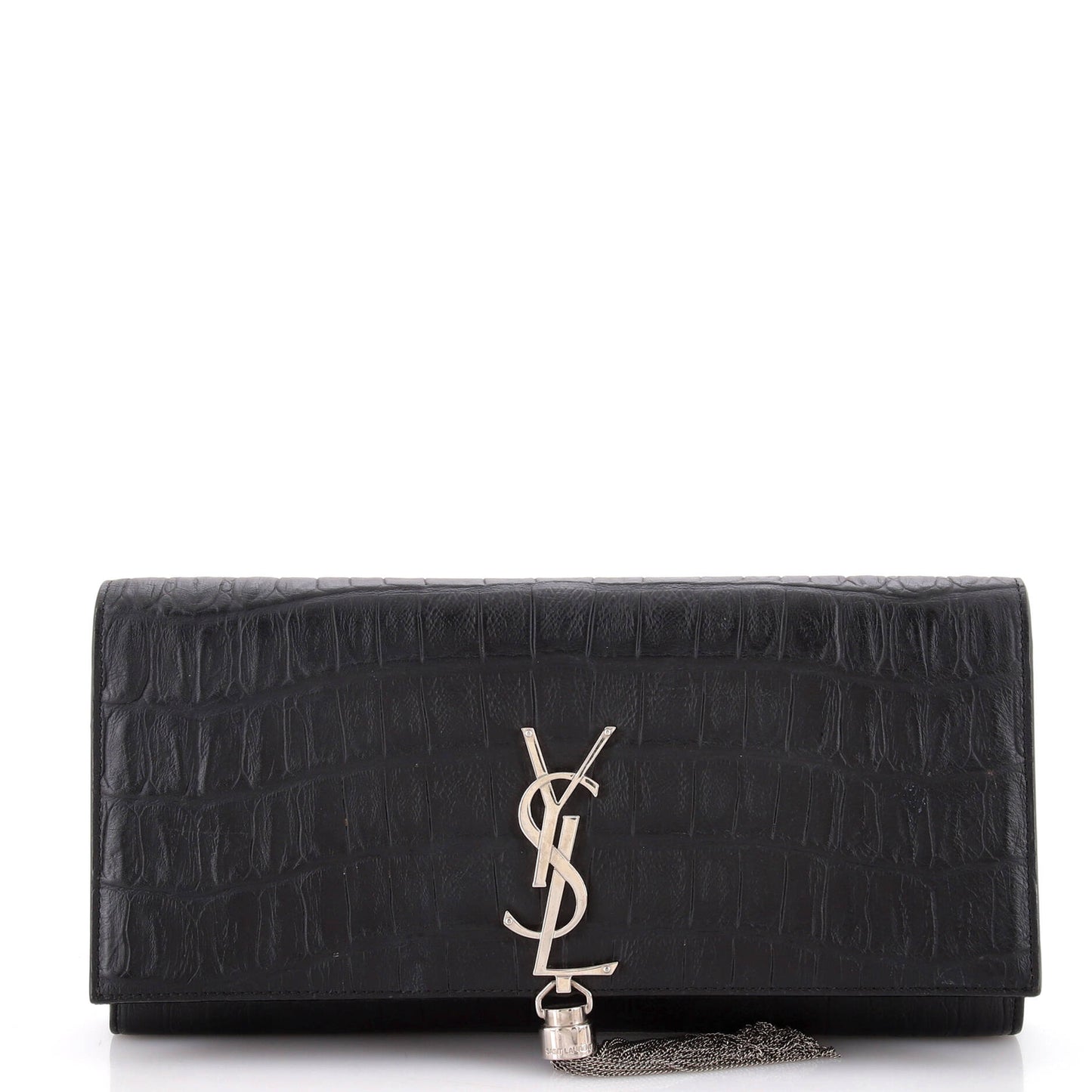 Saint Laurent Classic Monogram Tassel Clutch Crocodile Embossed Leather Long