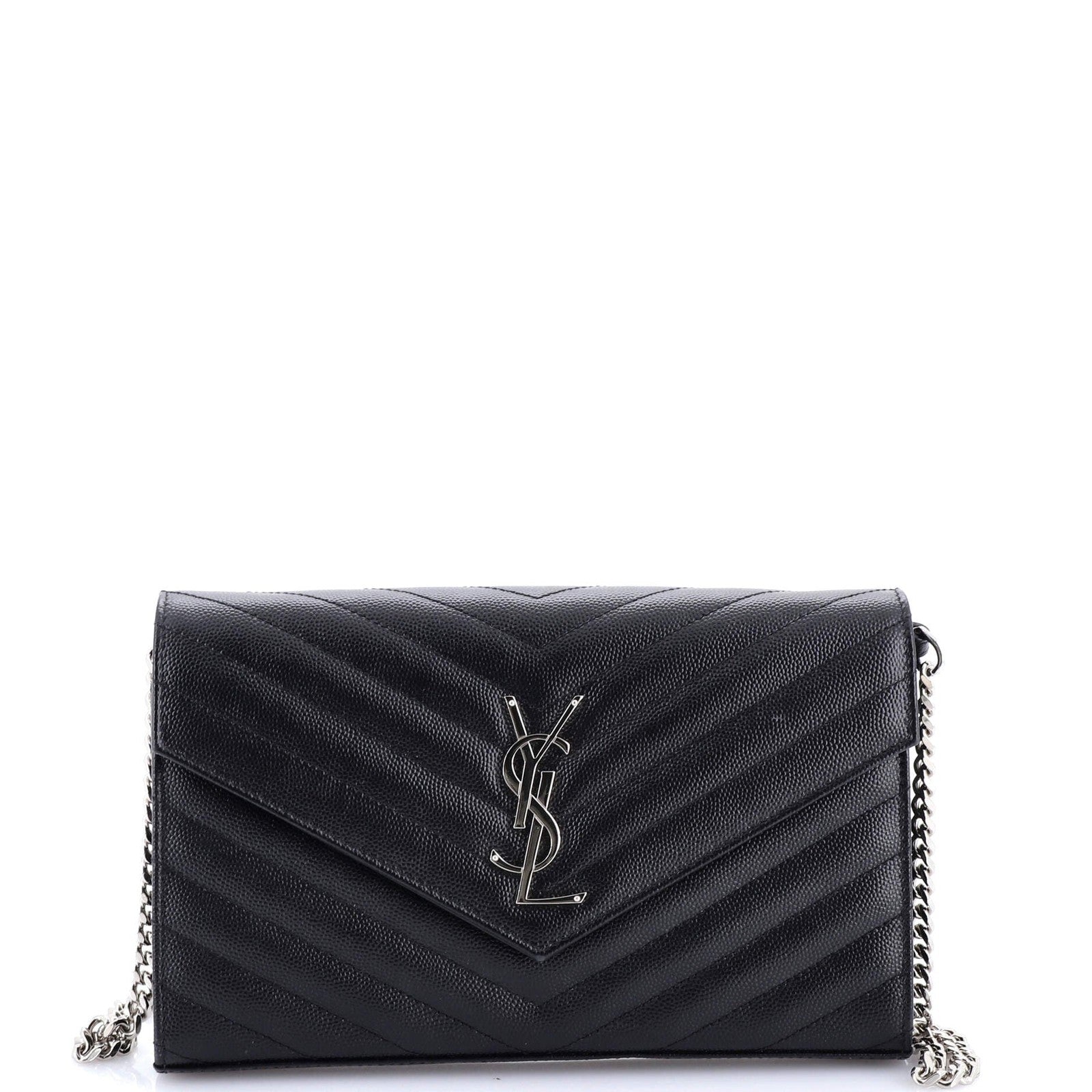 Saint Laurent Classic Monogram Wallet On Chain Matelasse Chevron Leather Medium
