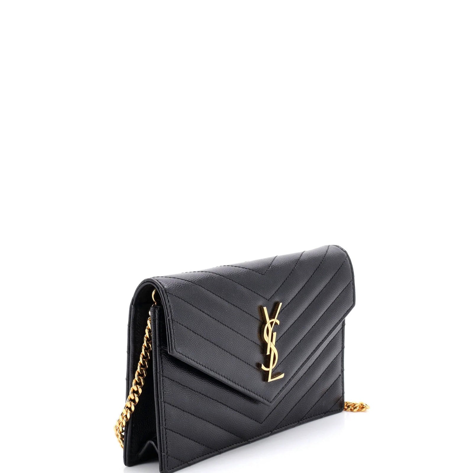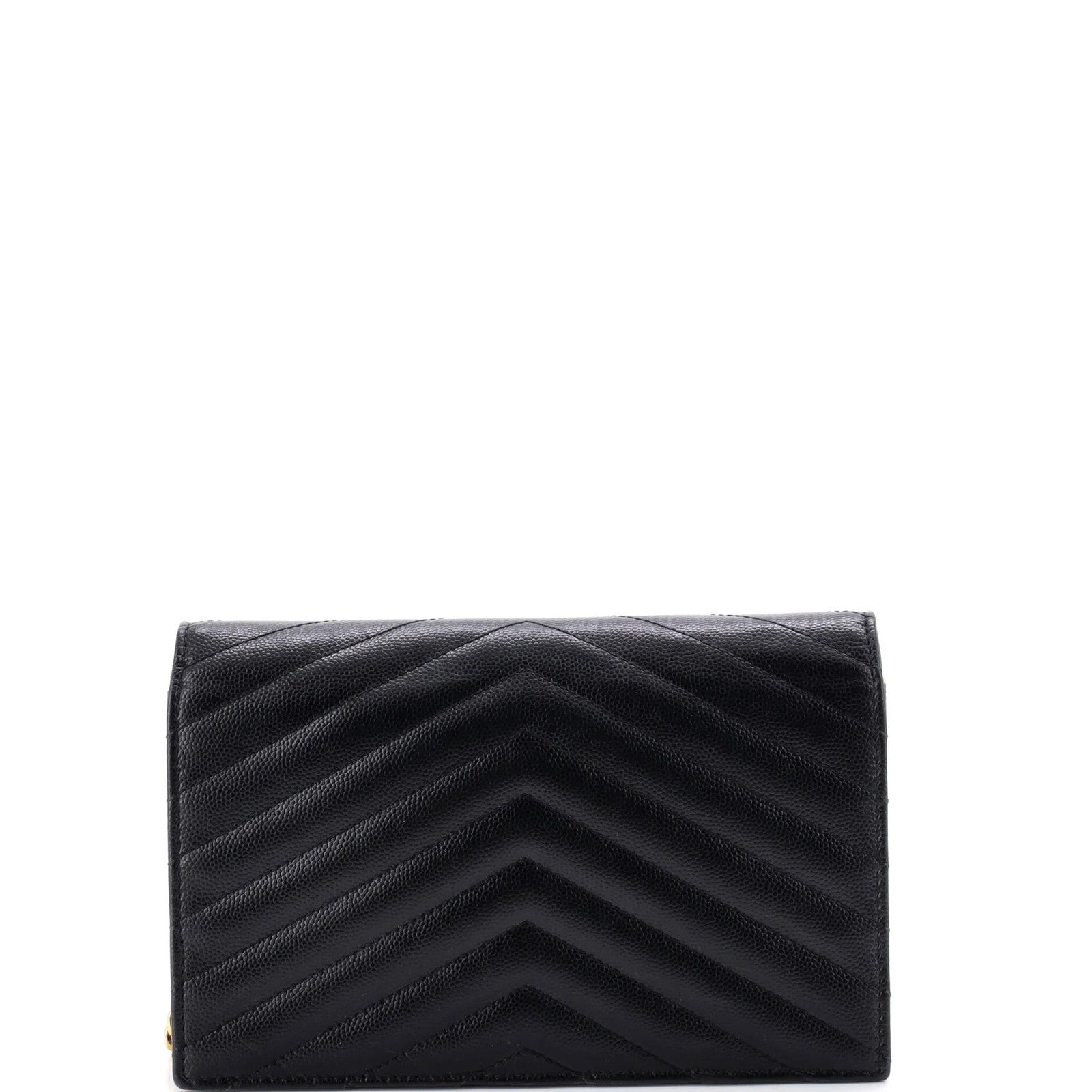 Saint Laurent Classic Monogram Wallet On Chain Matelasse Chevron Leather Small