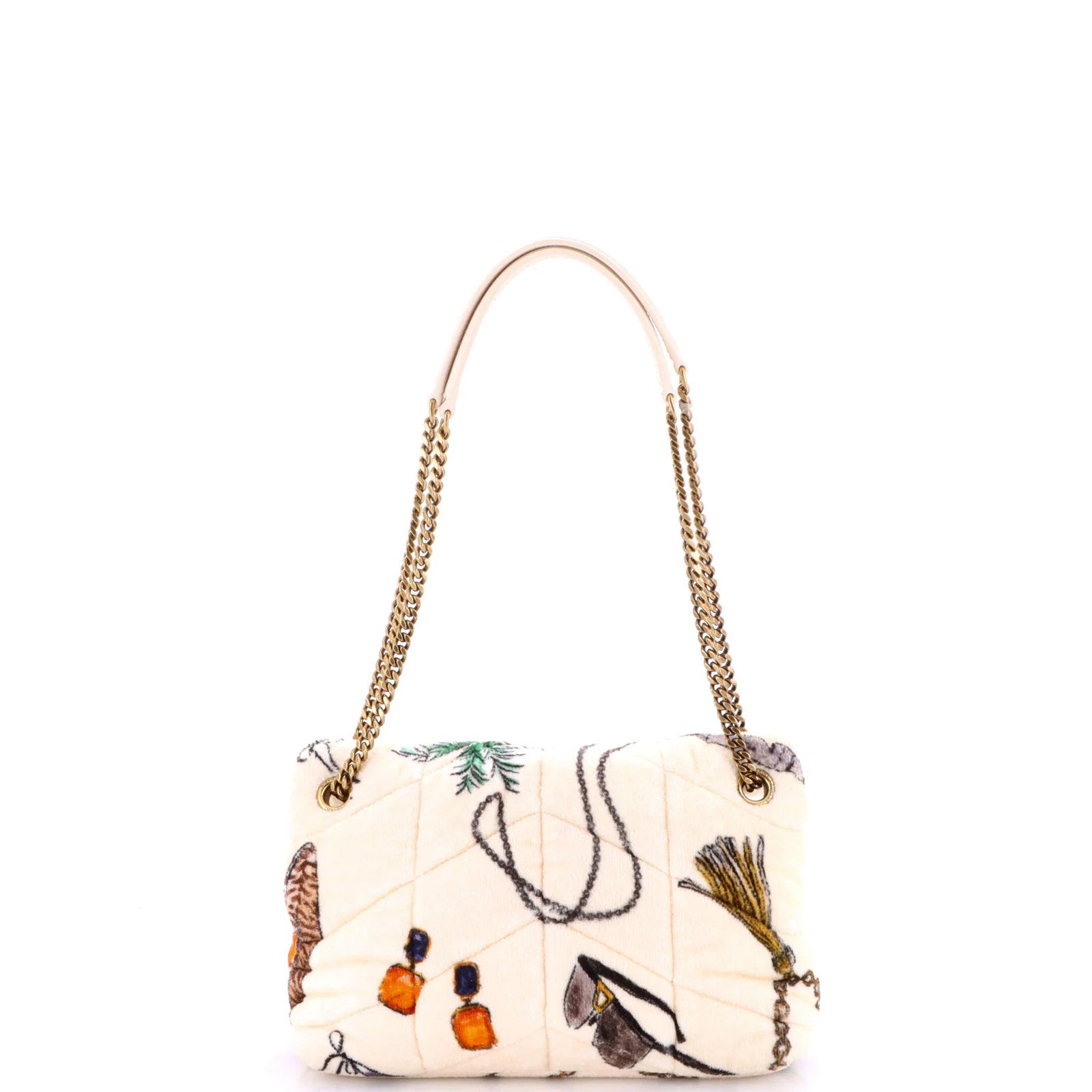 Saint Laurent Loulou Puffer Shoulder Bag Quilted Printed Terry Cloth Small